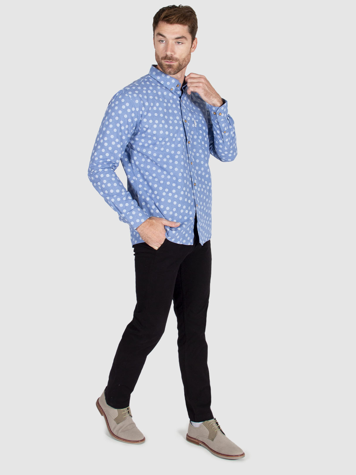 Nuestra camisa de cambray es un clásico durante todo el año y un básico en tu guardarropa. Con un corte regular en manga larga esta elegante prenda básica cuenta con un bolsillo en el pecho con etiqueta de la marca un cuello abotonado con dos dedos.