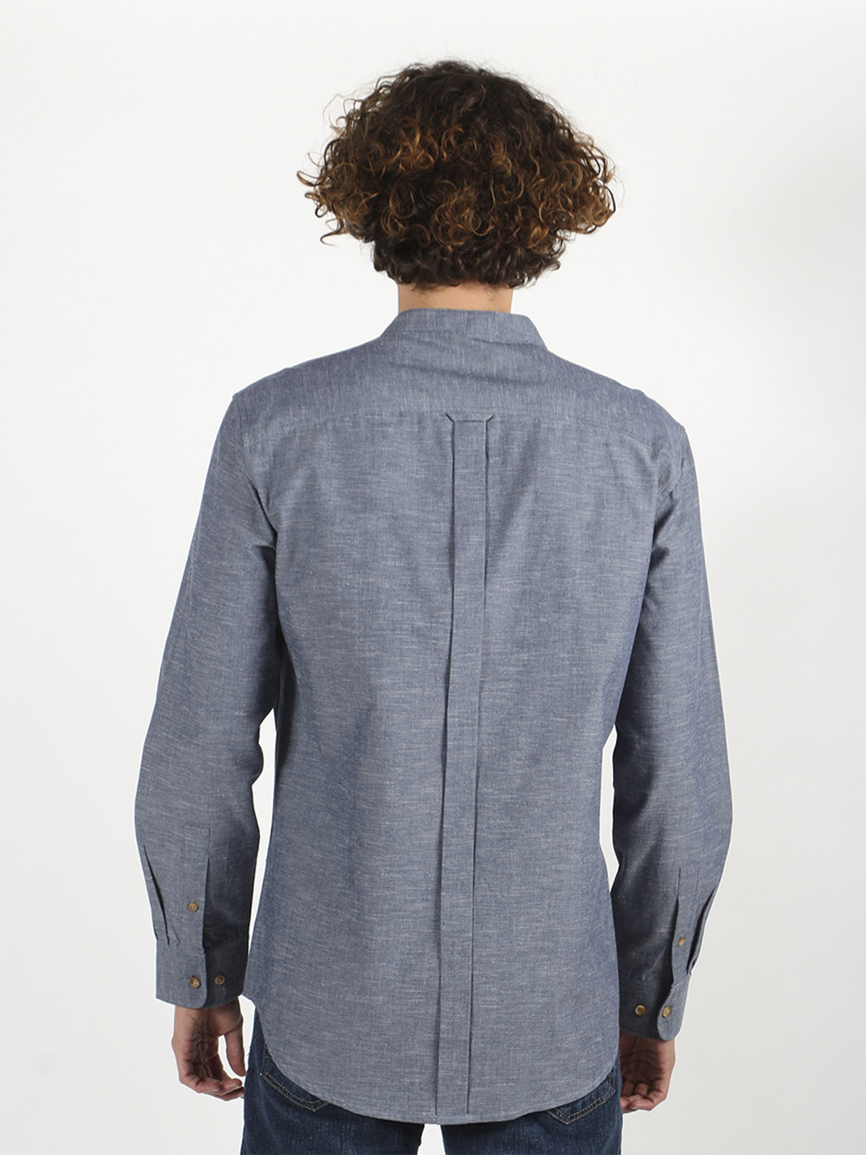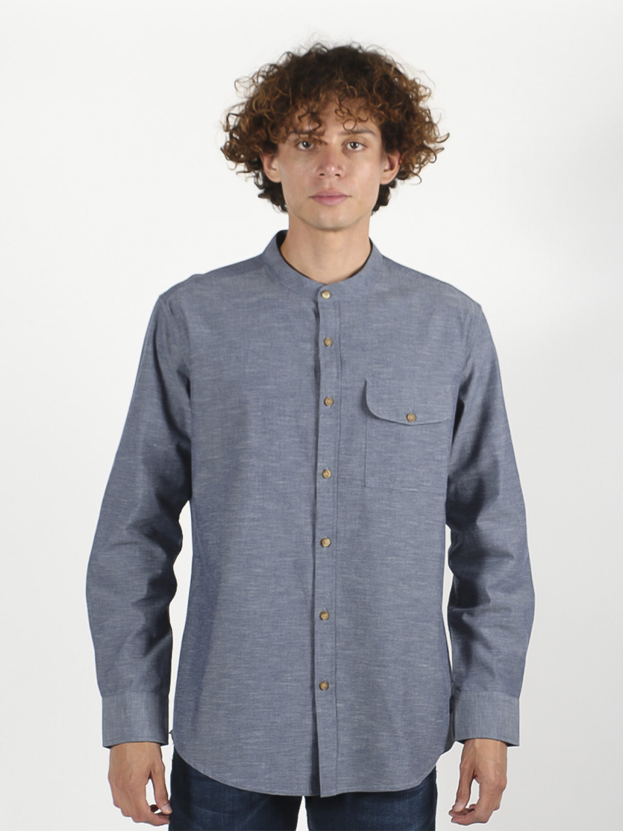 Camisa texturizada de manga larga presenta un dobladillo curvado bolsillo frontal con solapa y cierre de botón . Confeccionada en algodón esta camisa de corte clásico con cuello Mao y botones de corozo se completa con una etiqueta tejida con la marca Ben Sherman en la parte baja frontal
