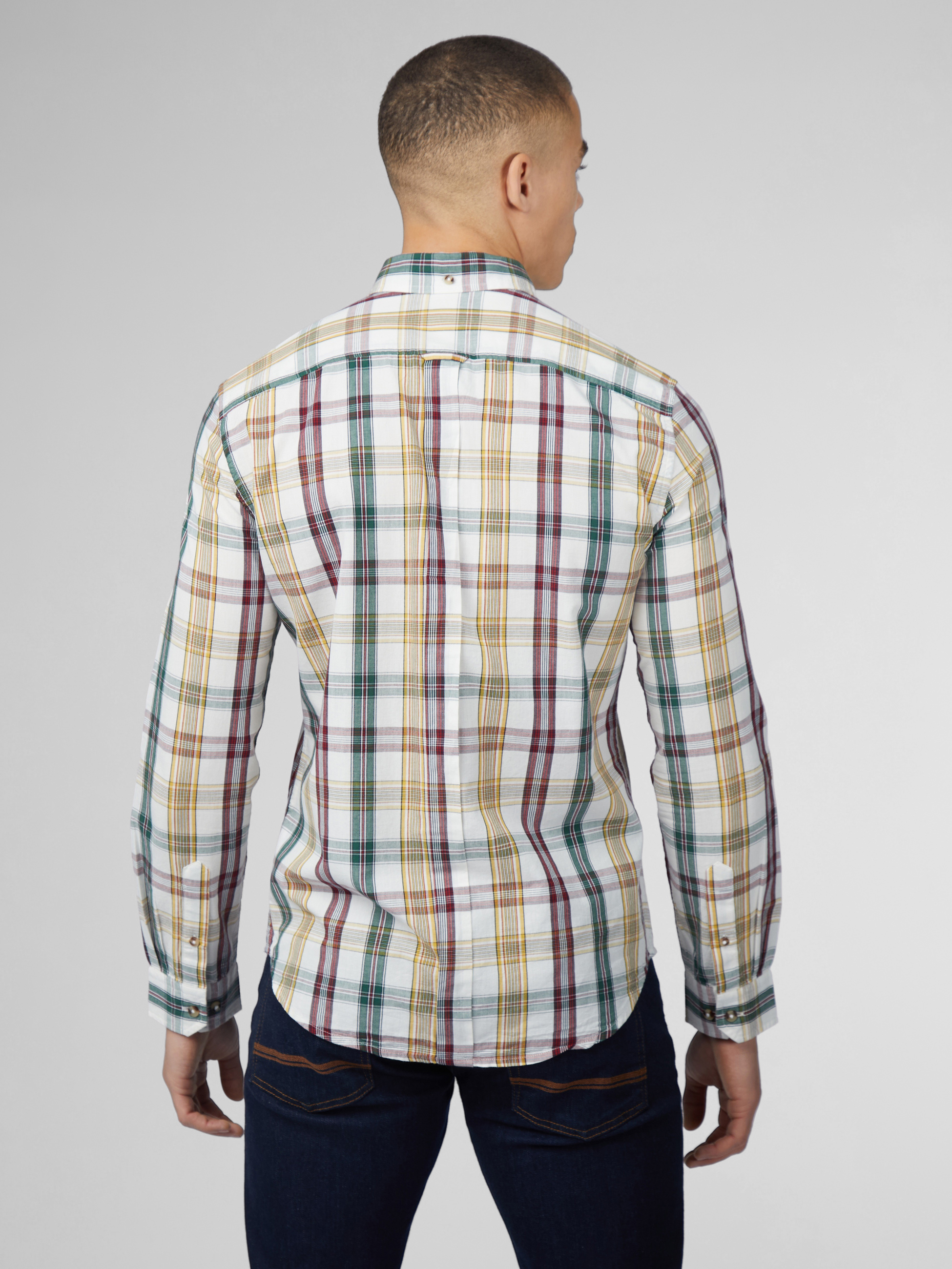 Esta camisa a cuadros tradicional presenta un dobladillo curvado y un cuello con botones de dos dedos. Confeccionada con algodón esta camisa de corte estándar se completa con una etiqueta tejida con la marca Ben Sherman en el bolsillo del pecho.