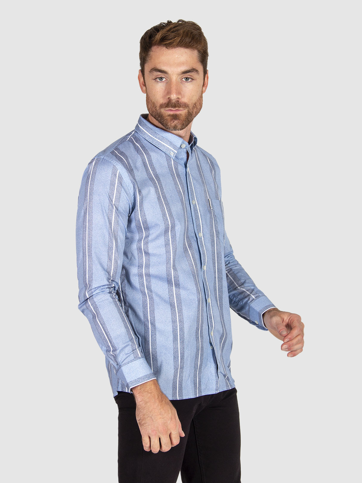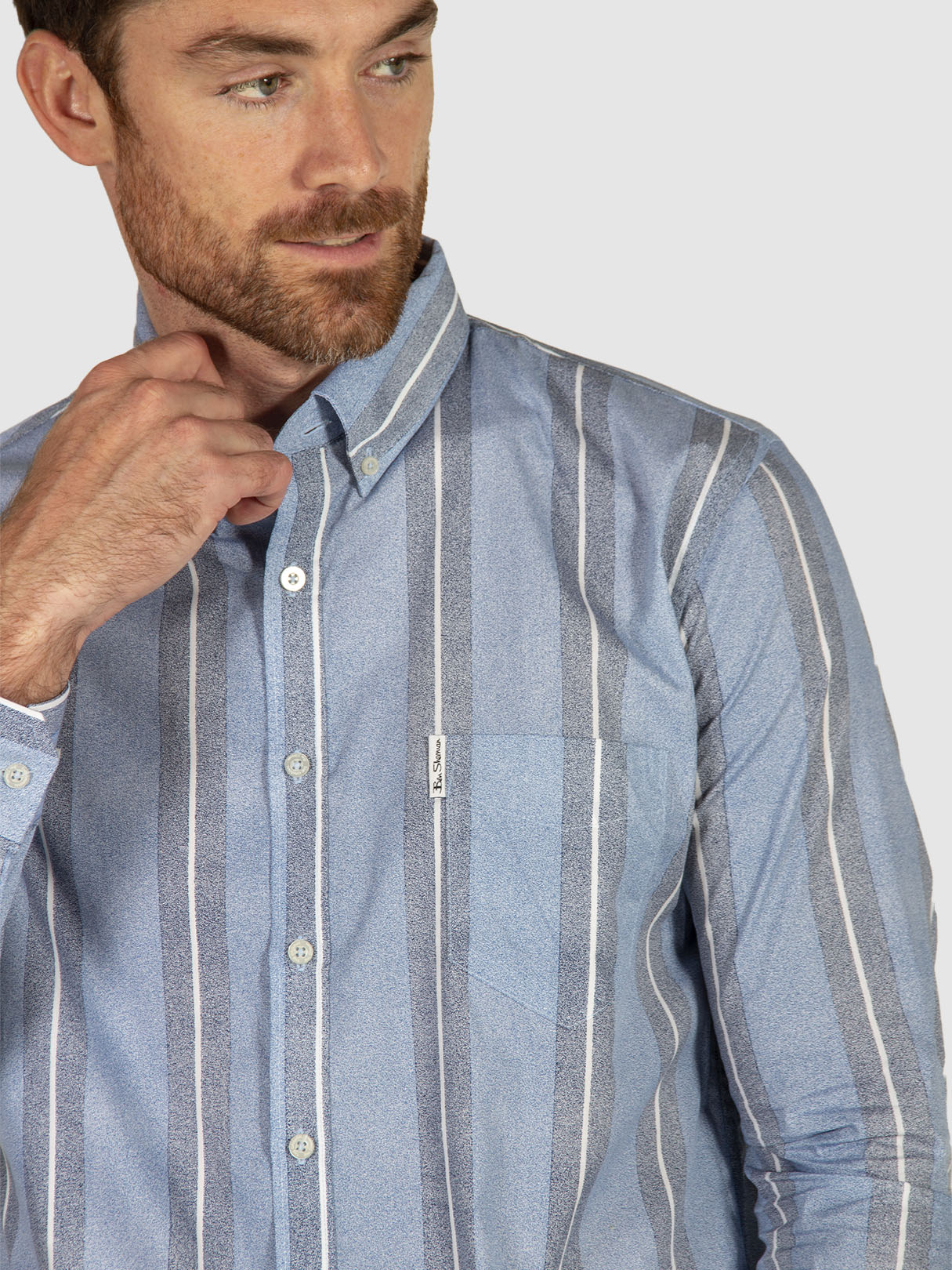 Esta camisa de rayas  Ben Sherman viene en un ajuste regular con un cuello abotonado de tres dedos y está confeccionada en algodón y cuenta con un bolsillo de pala en el pecho.