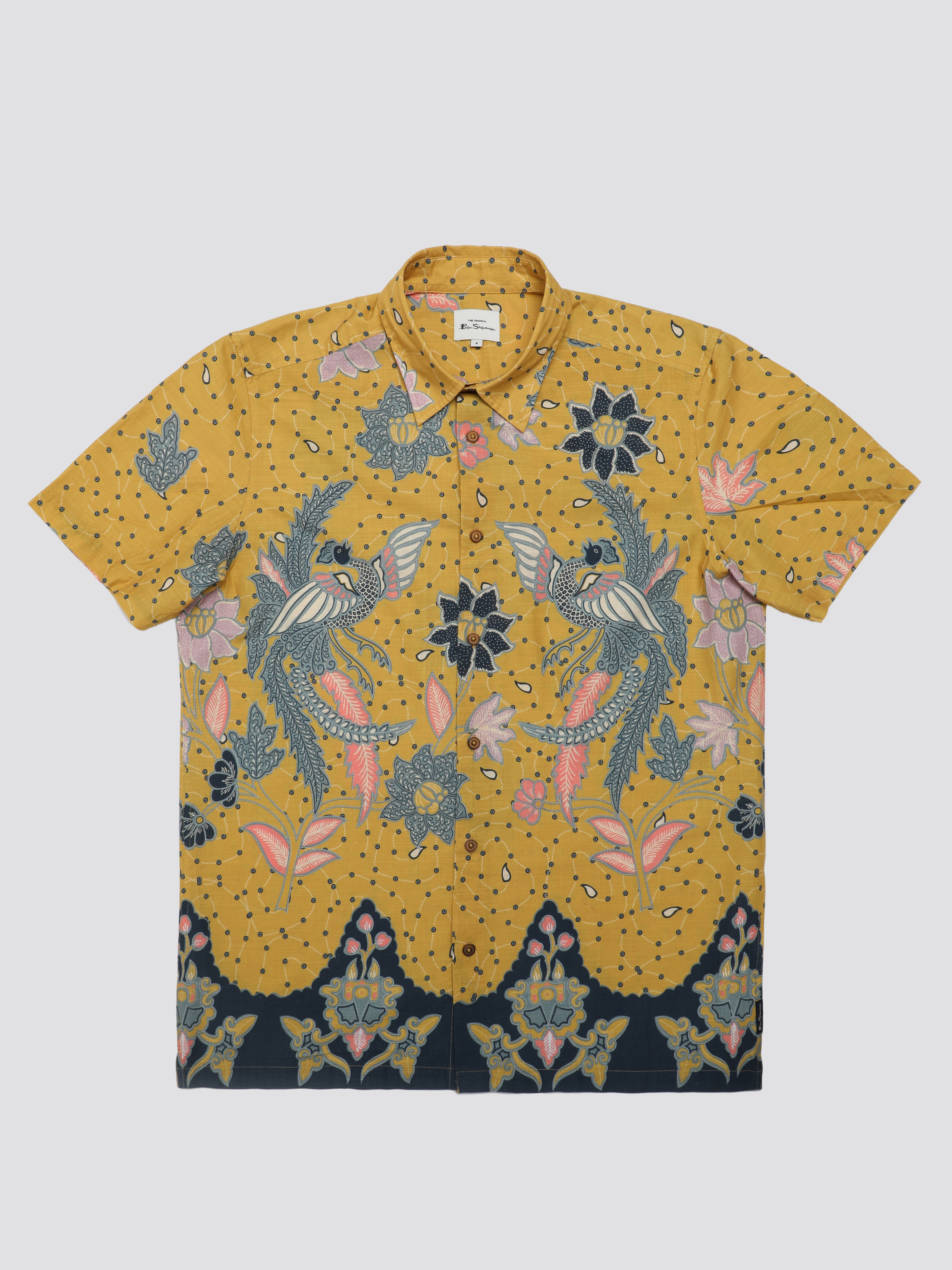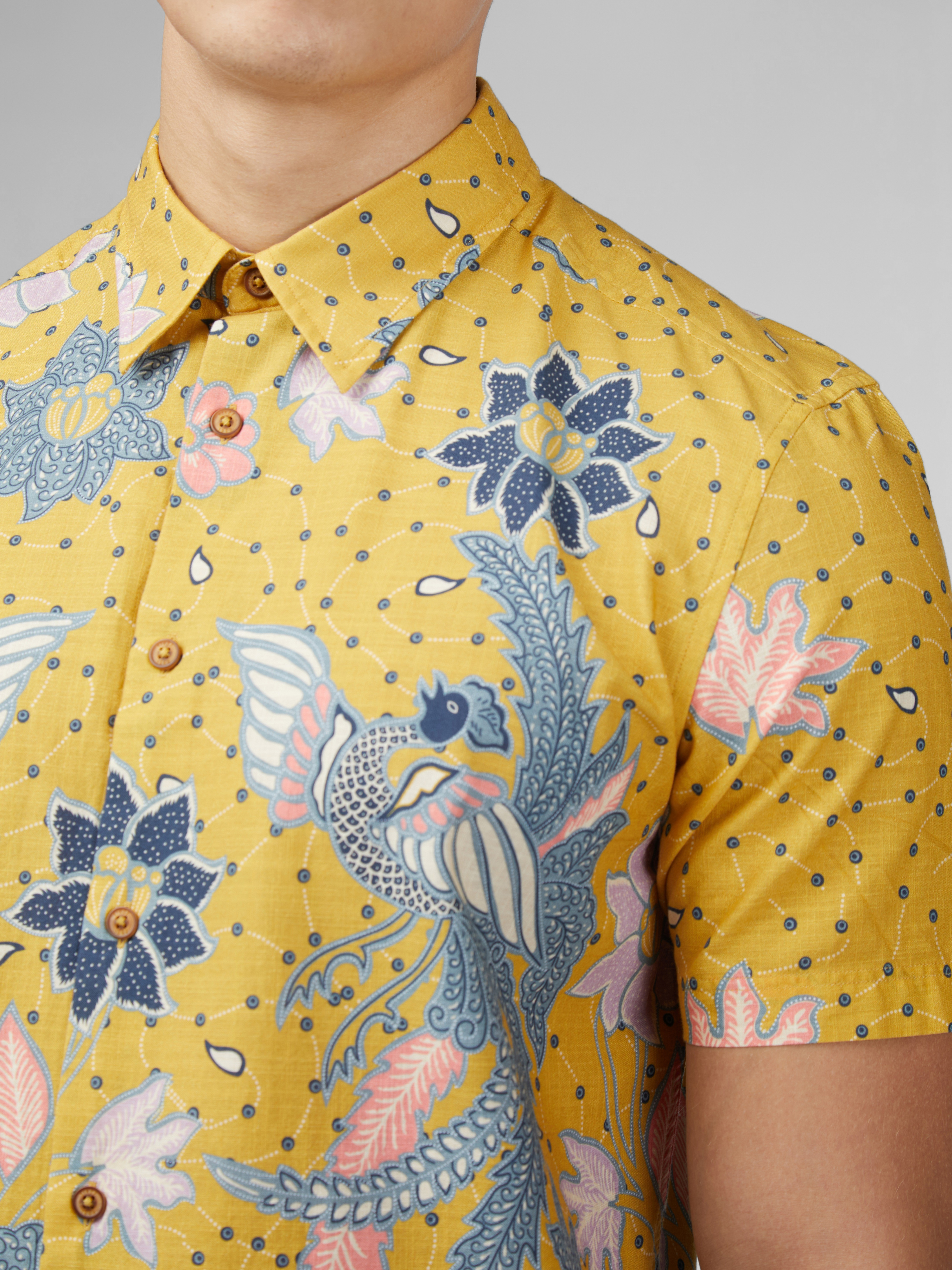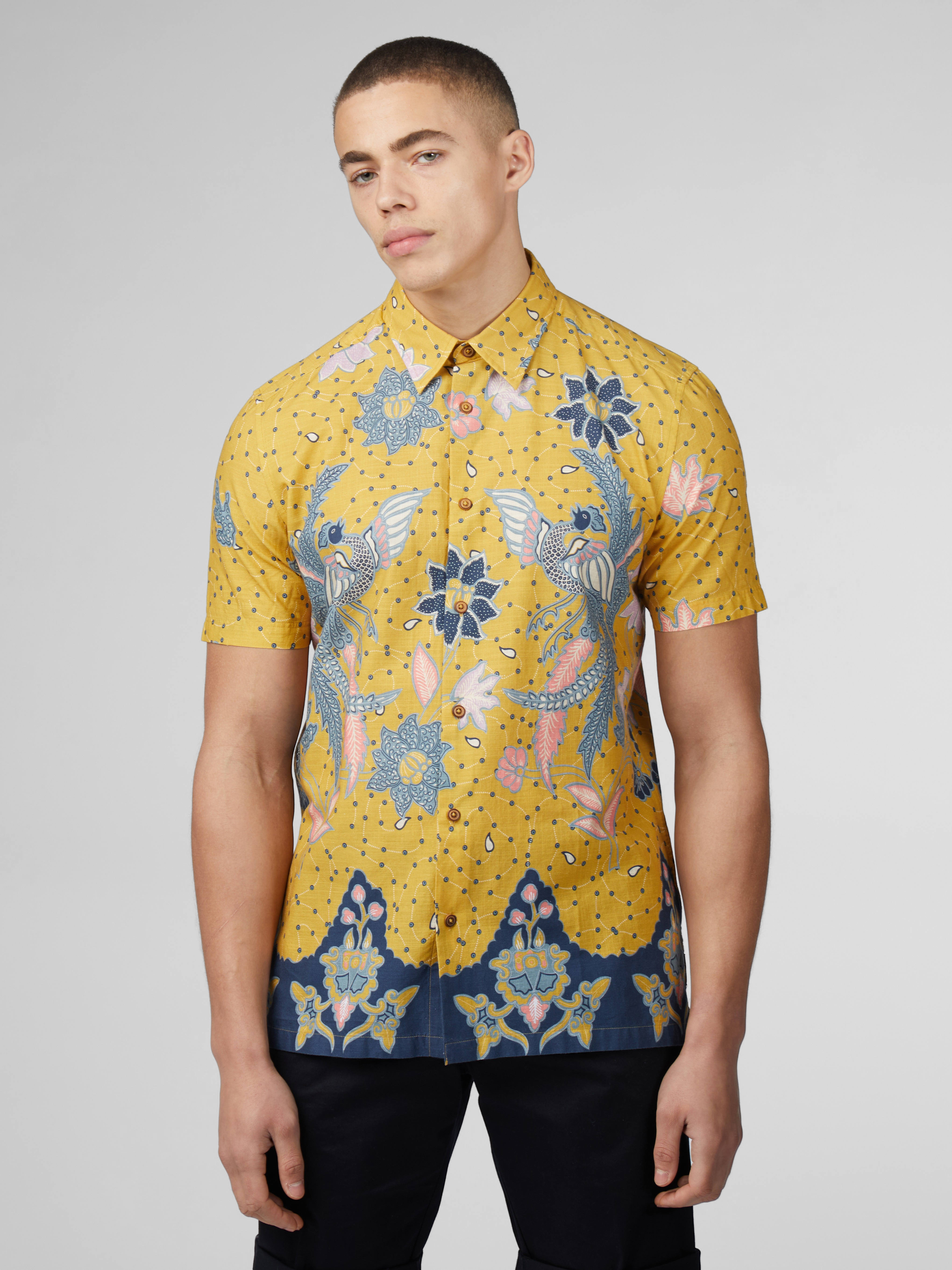 Una camisa de corte clásico diseñada con un estampado botánico abstracto. Con dobladillo recto cuello en punta informal y una pestaña tejida con la marca Ben Sherman en la costura lateral. Confeccionado en 100% algodón.