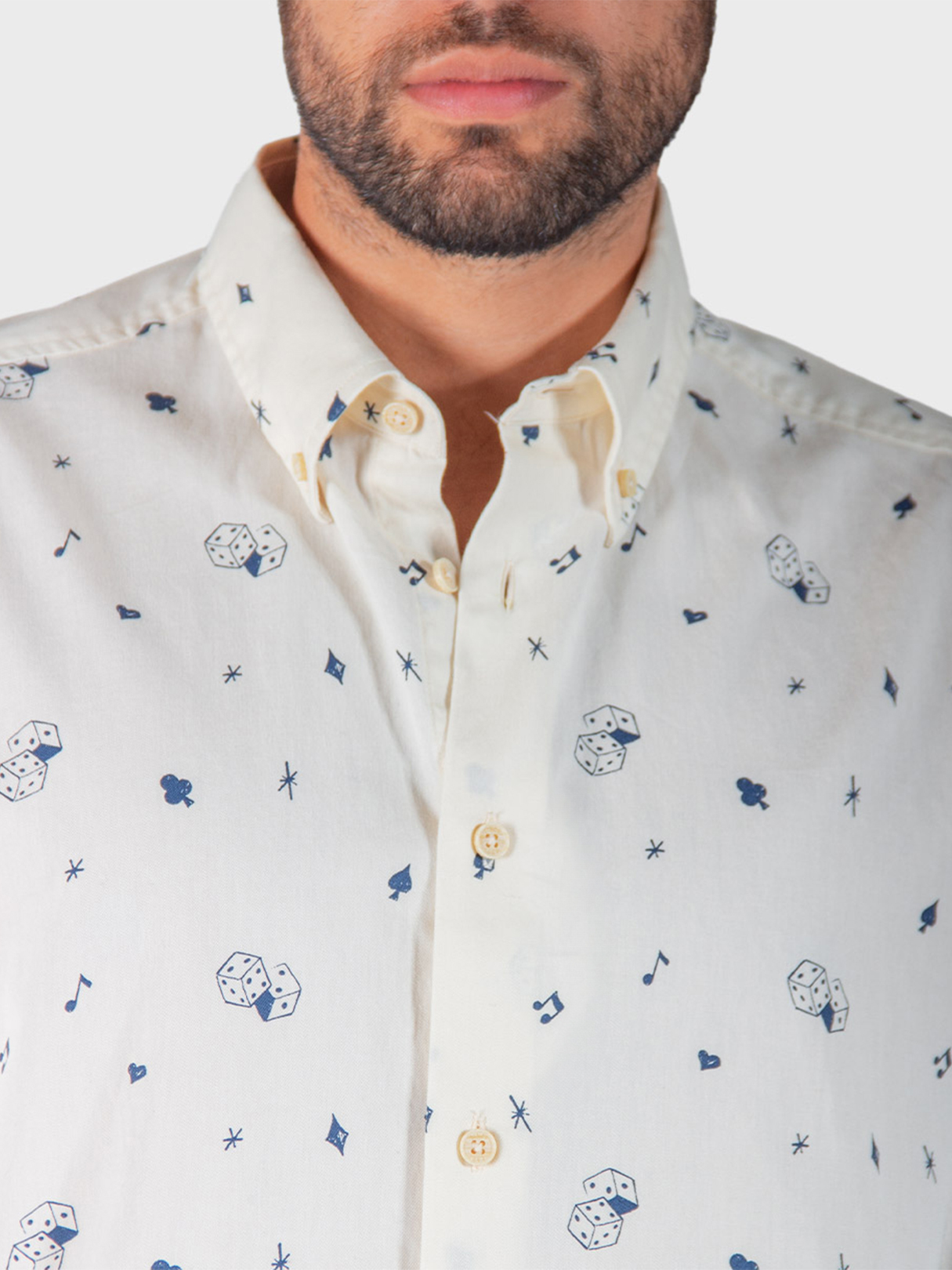 Esta camisa de manga larga con estampado informal presenta un cuello abotonado con dos botones. Esta camisa de corte regular confeccionada en 100 % algodón se completa con una etiqueta tejida con la marca Ben Sherman en la costura lateral.