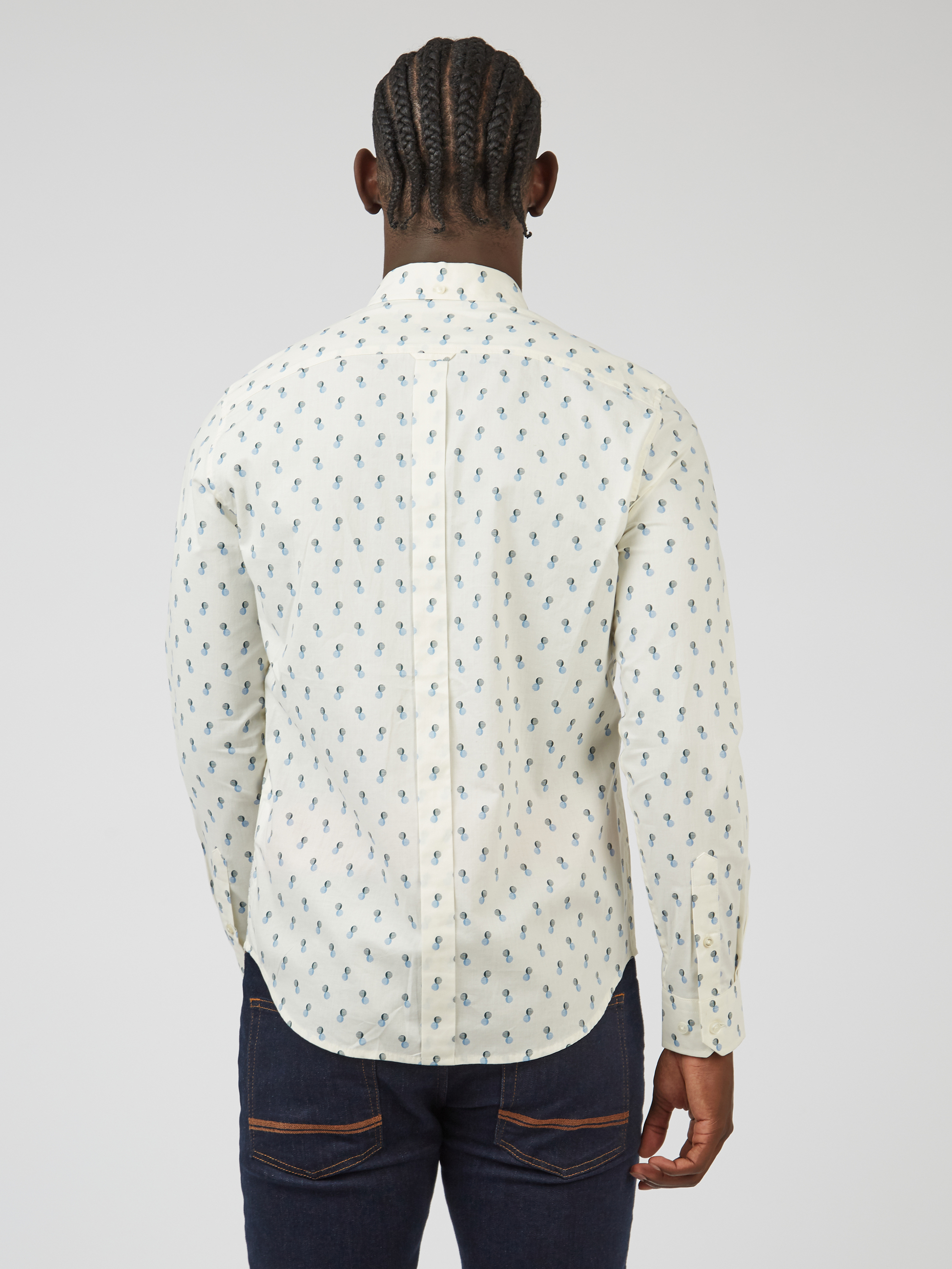 Camisa con estampado de puntos de Ben Sherman viene en un ajuste regular con mangas largas y cuenta con un cuello con botones de 2 dedos.