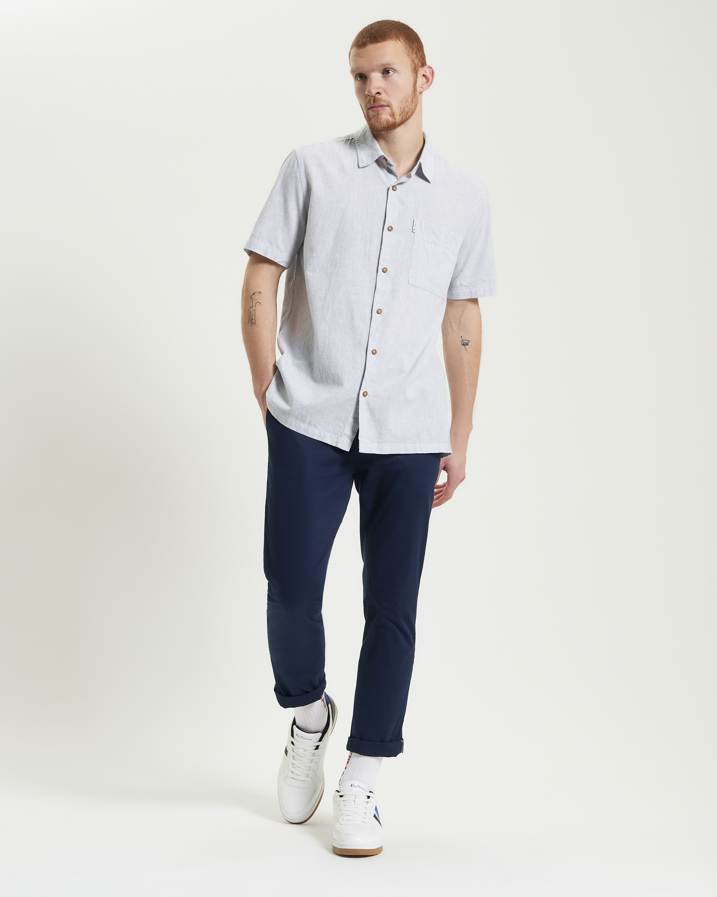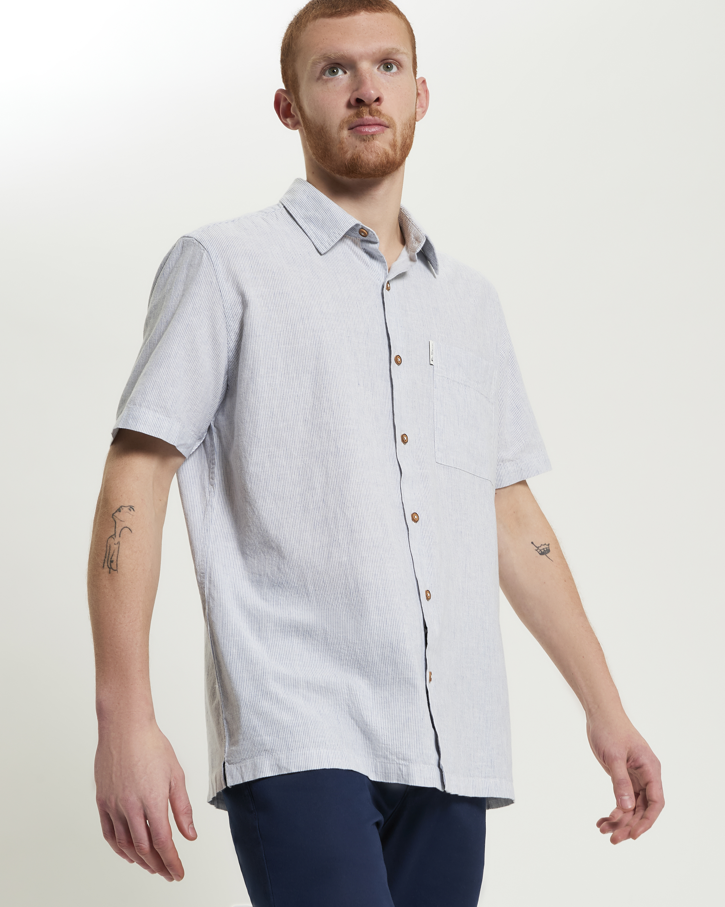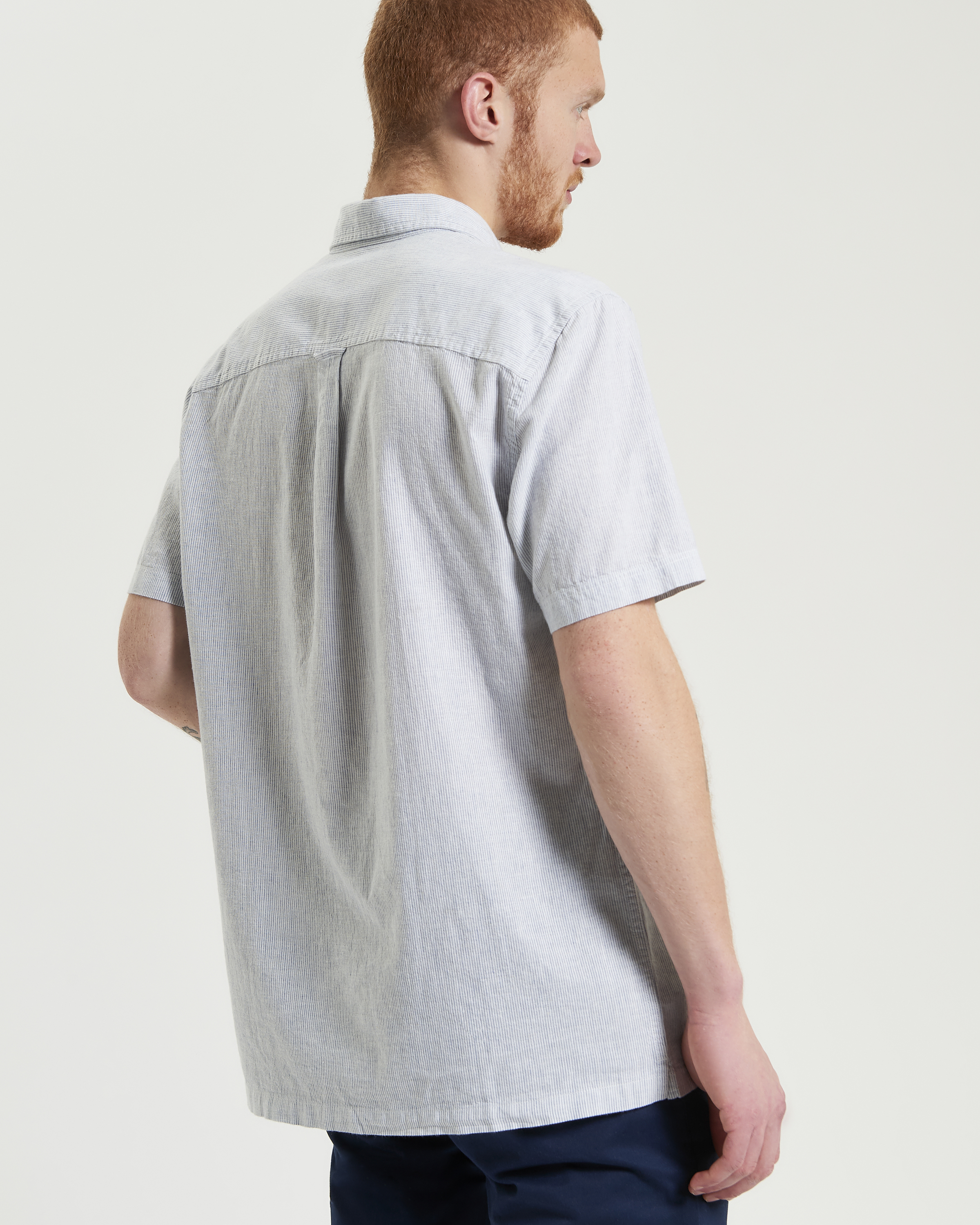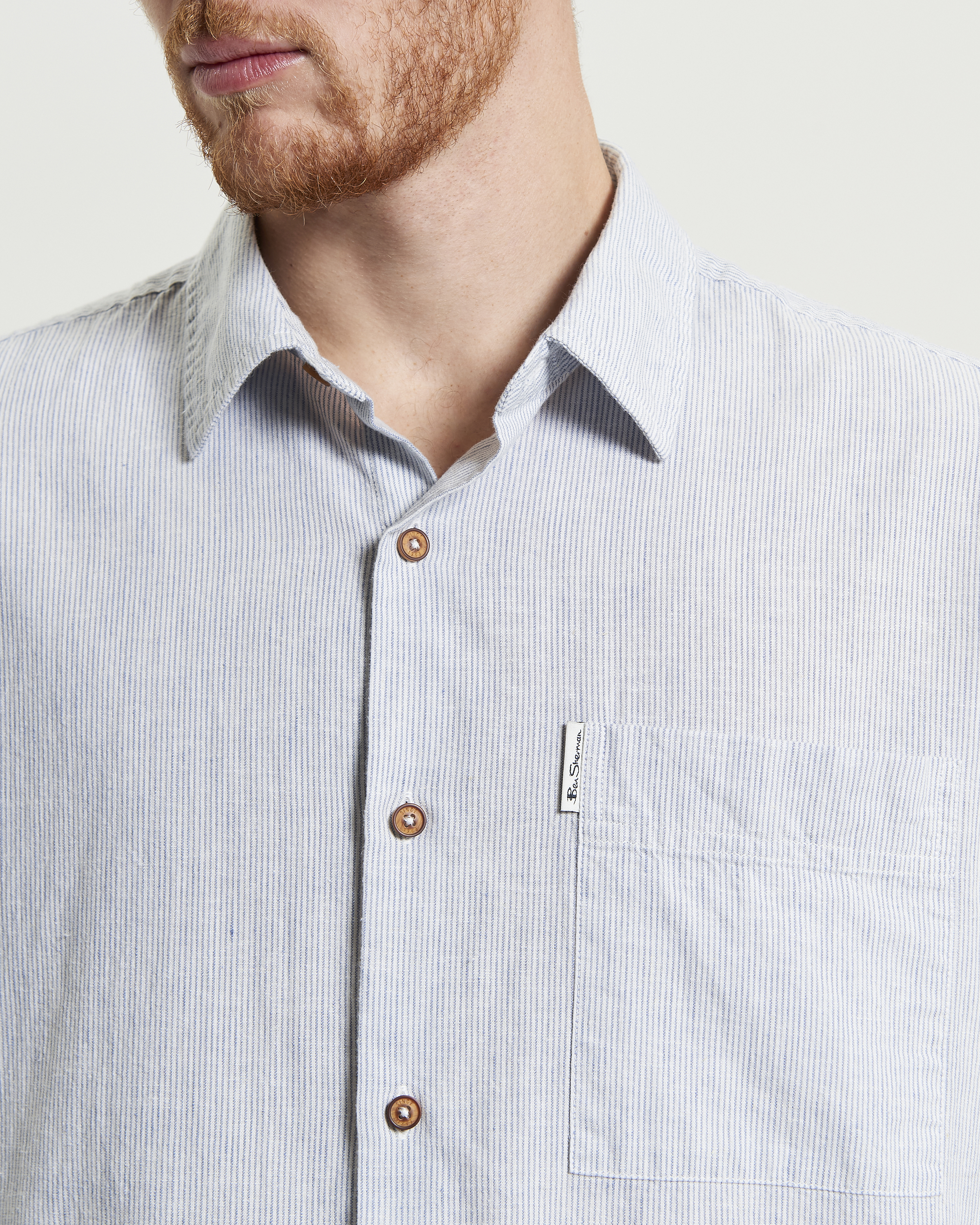 Camisa casual de Rayas Ticking en corte Carnaby fit de manga corta con bolsillo grande en el pecho y una etiqueta tejida con la marca “Ben Sherman” ™