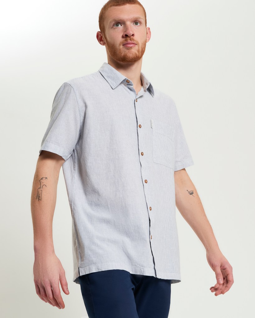 Camisa casual de Rayas Ticking en corte Carnaby fit de manga corta con bolsillo grande en el pecho y una etiqueta tejida con la marca “Ben Sherman” ™