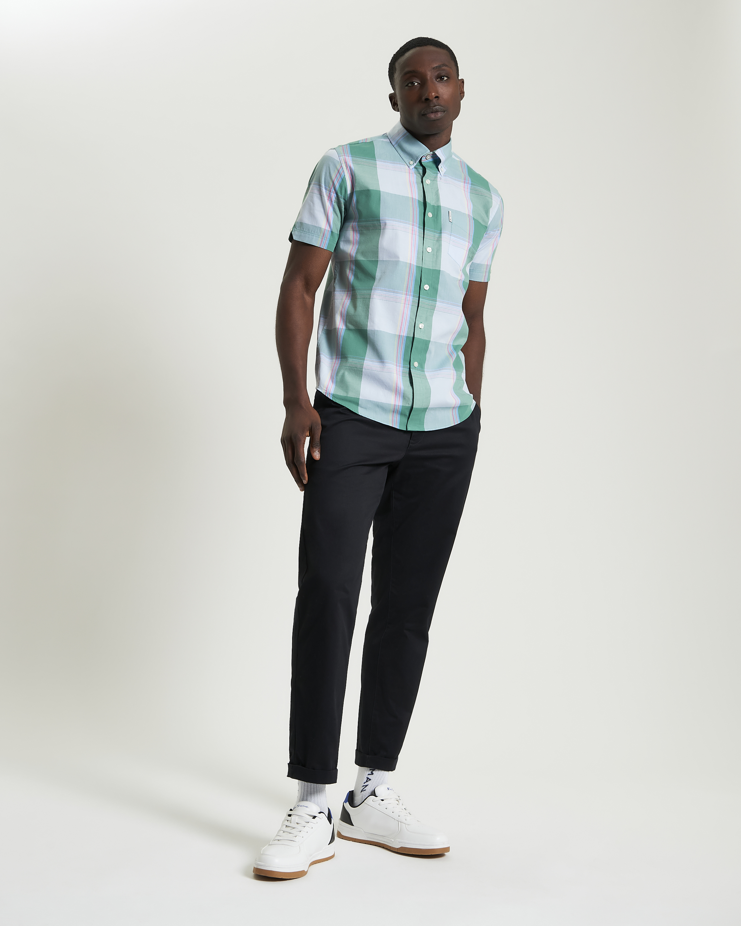 Camisa Casual Ben Sherman confeccionada con 100% algodón de cuadros overcheck multicolor cuello tipo inglés de dos dedos con botón manga corta cuenta con bolsillo tipo pala y etiqueta de marca bordada en costura derecha.