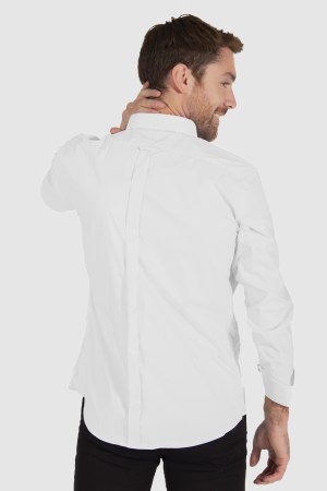 Nuestra camisa Oxford es un corte esencial en nuestro guardarropa además de nuestro corte mod regular. Este elegante básico cuenta con un bolsillo frontal con la B bordada un cuello con botones de dos dedos y un pliegue en la parte trasera.
