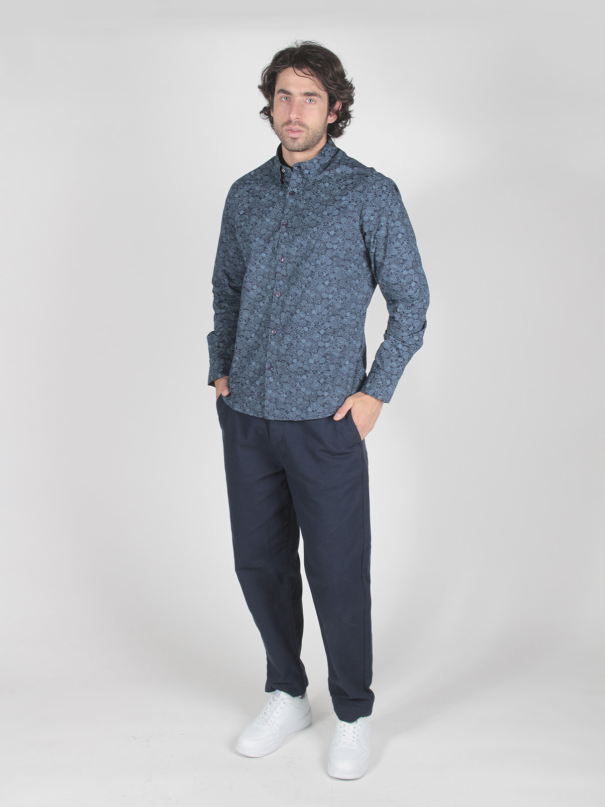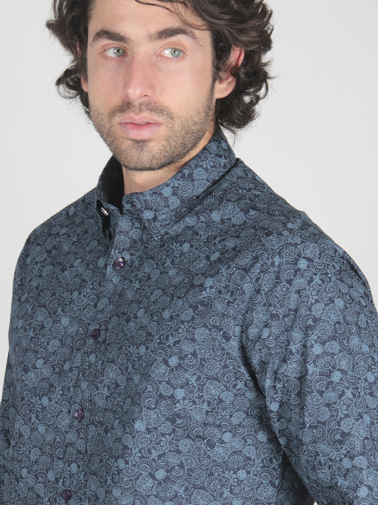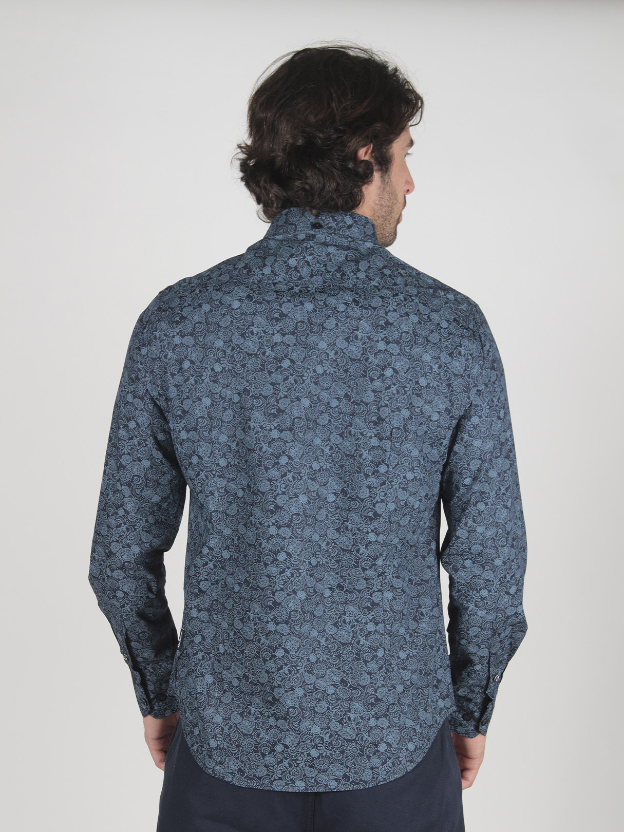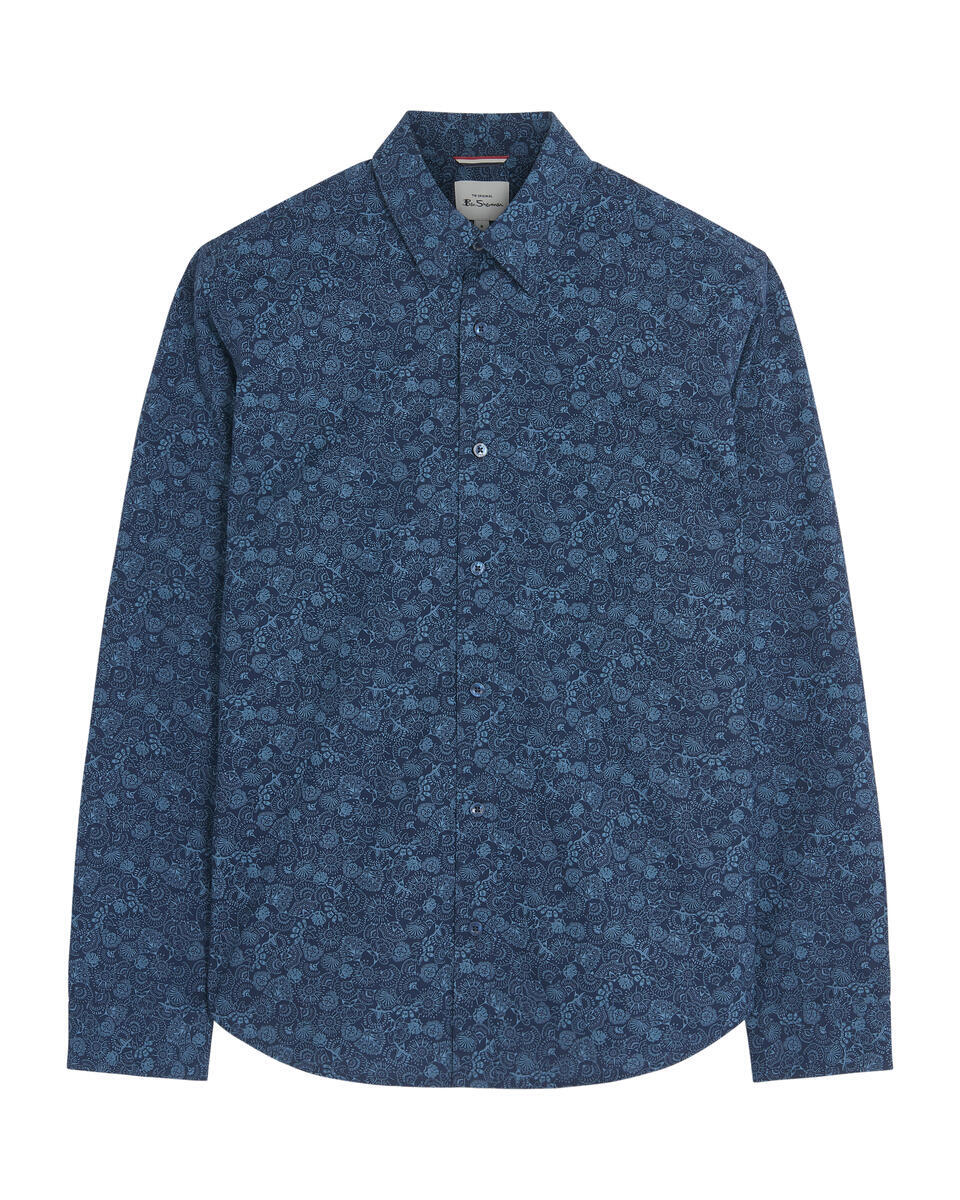 Una camisa de ajuste regular que presenta un estampado integral de flores británicas en manga larga. Con dobladillo curvado cuello con botones de dos dedos. Confeccionado en algodón.