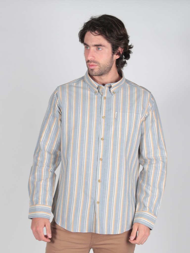 Nuestra camisa Oxford a rayas es un corte esencial en nuestro guardarropa en un corte mod regular. Este elegante básico cuenta con un bolsillo frontal con la marca en el pecho un cuello con botones de dos dedos y un pliegue en la parte trasera.