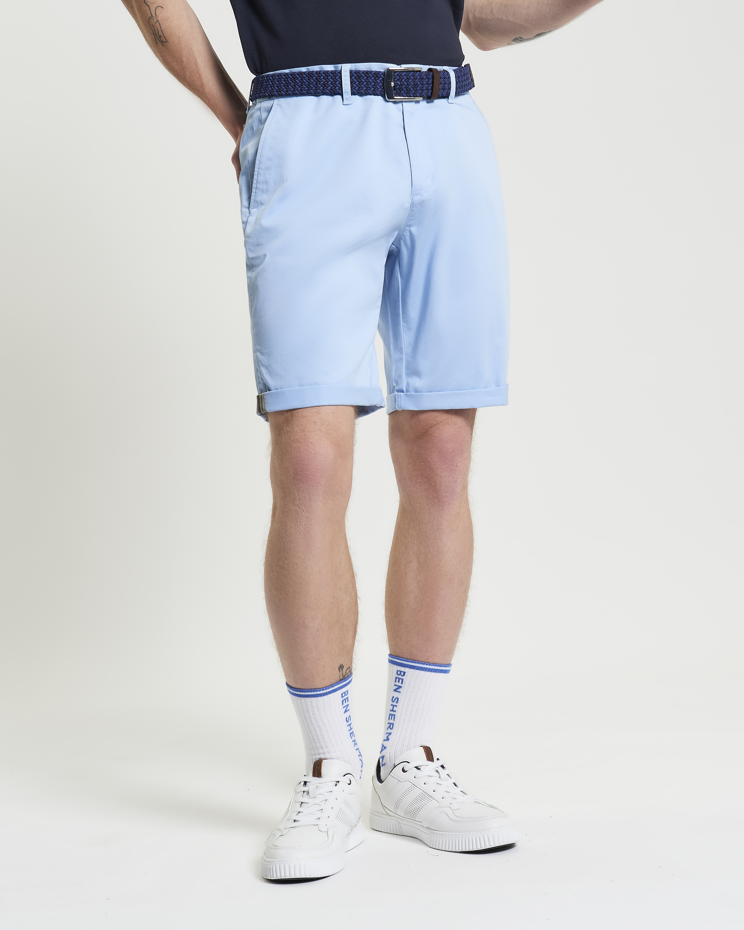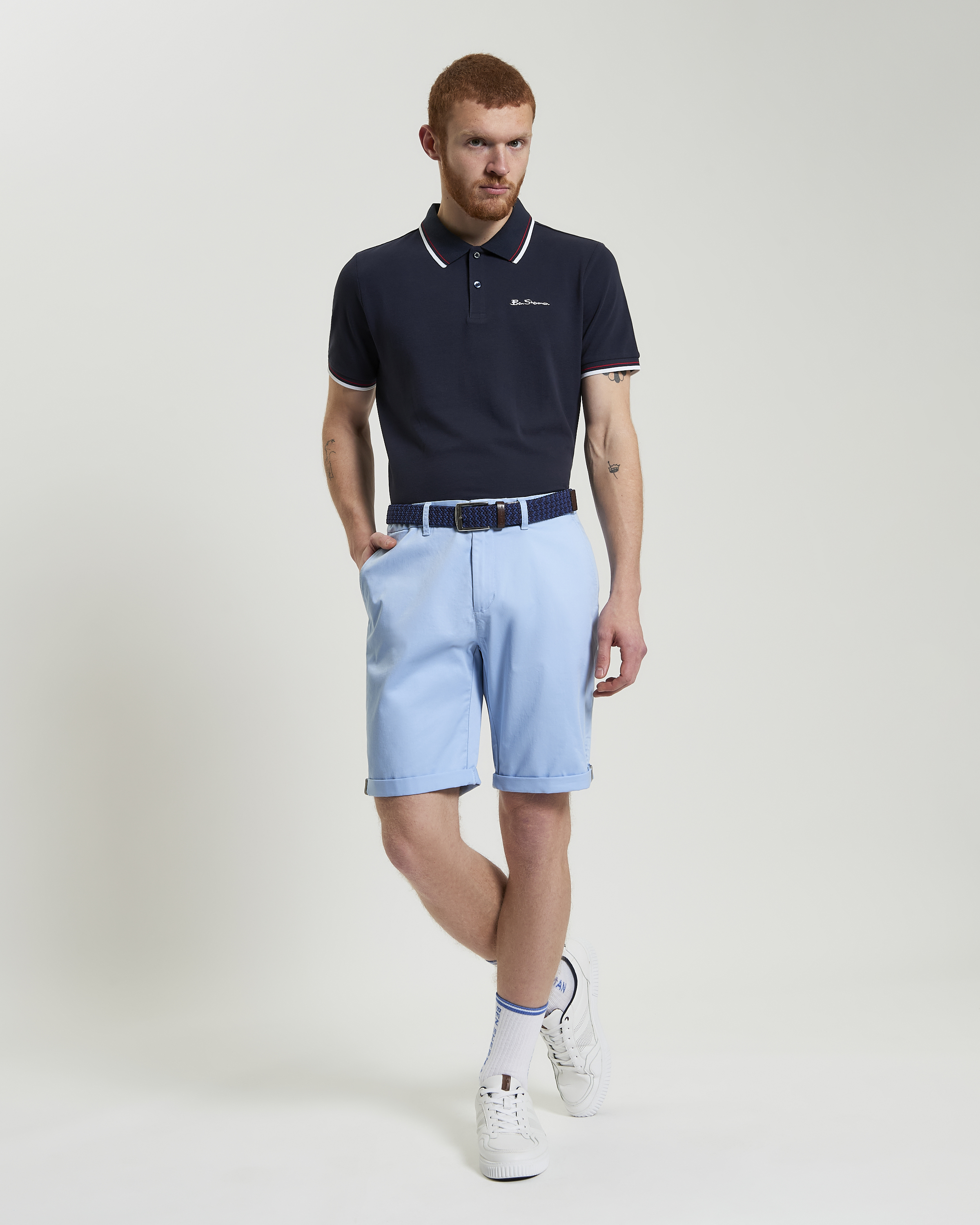 Nuestro clásico pantalón corto chino en tejido de algodón. Las características incluyen botones de Ben Sherman detalles de dobladillo de rayas mod y una insignia de Ben Sherman con la marca. Esta pieza tiene dos bolsillos laterales y 2 bolsillos jet.