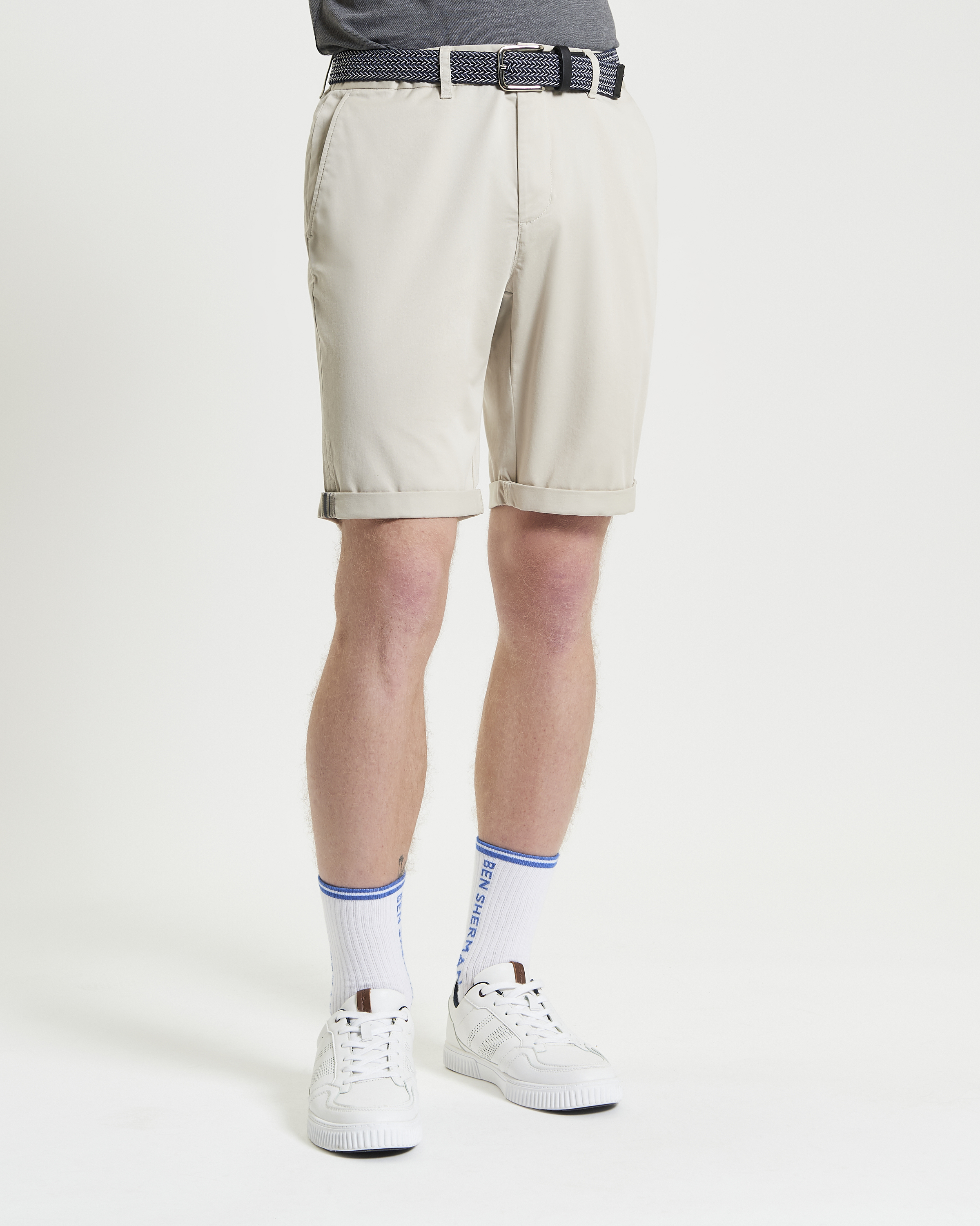 Nuestro clásico pantalón corto chino en tejido de algodón. Las características incluyen botones de Ben Sherman detalles de dobladillo de rayas mod y una insignia de Ben Sherman con la marca. Esta pieza tiene dos bolsillos laterales y 2 bolsillos jet.