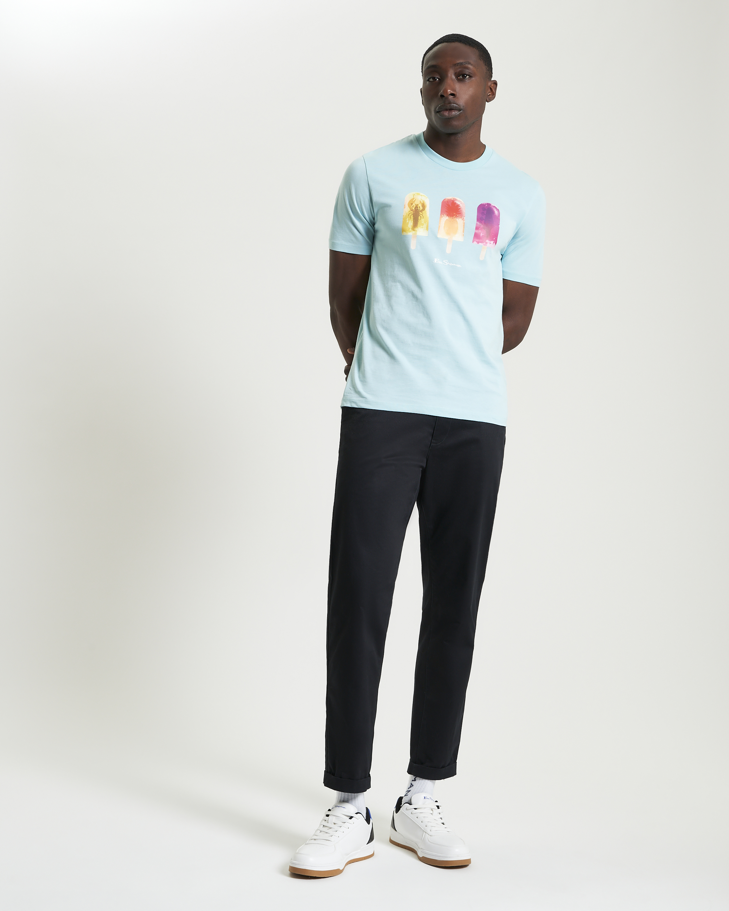 Playera de algodón orgánico 100% certificado GOTS de corte regular. esta playera presenta un estampado inspirado en Lolly art