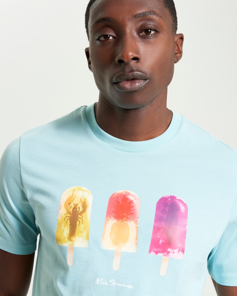 Playera de algodón orgánico 100% certificado GOTS de corte regular. esta playera presenta un estampado inspirado en Lolly art