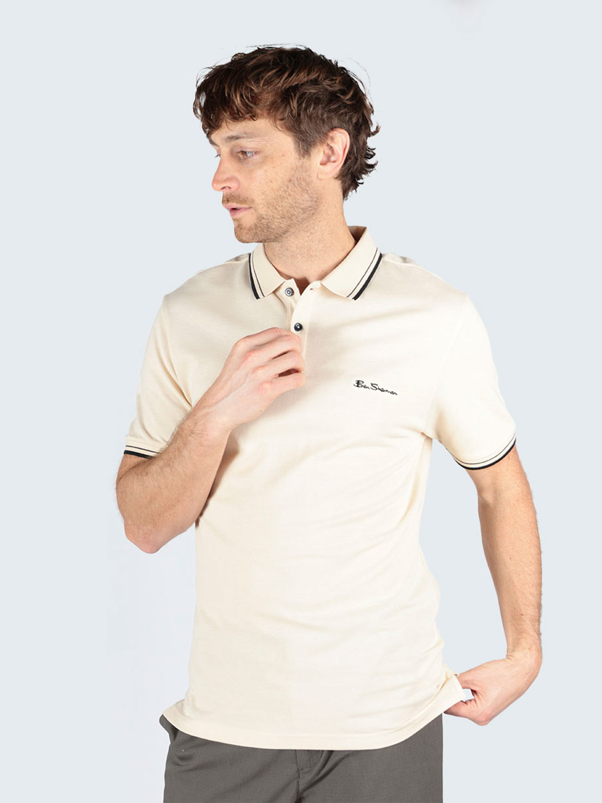 Confeccionado 100 % con algodón orgánico certificado por GOTS con la icónica marca Ben Sherman este polo para hombre es una adición versátil y elegante a cualquier guardarropa sin dejar de ser sostenible orgánico y consciente del mundo con cierre de dos botones y cuello plano de punto.