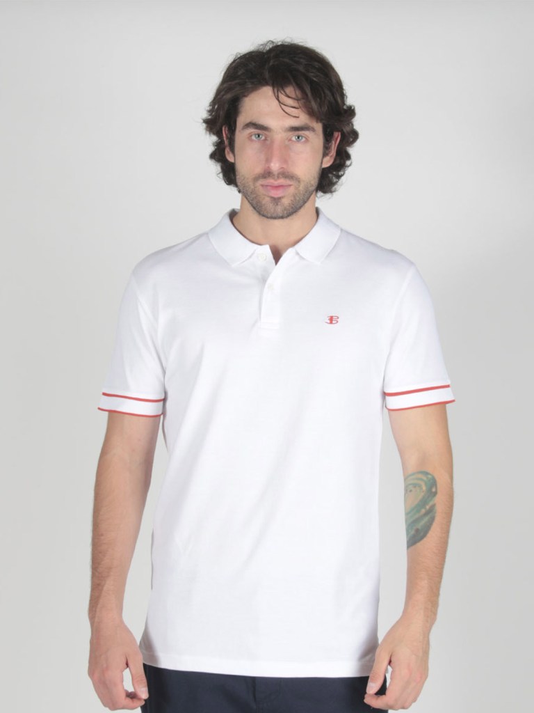 Polo Ben Sherman ajuste regular 100% algodón orgánico manga corta con cuello tipo americano y cierre de dos botones bordado en el pecho logo B by Ben con ribete de contraste las mangas
