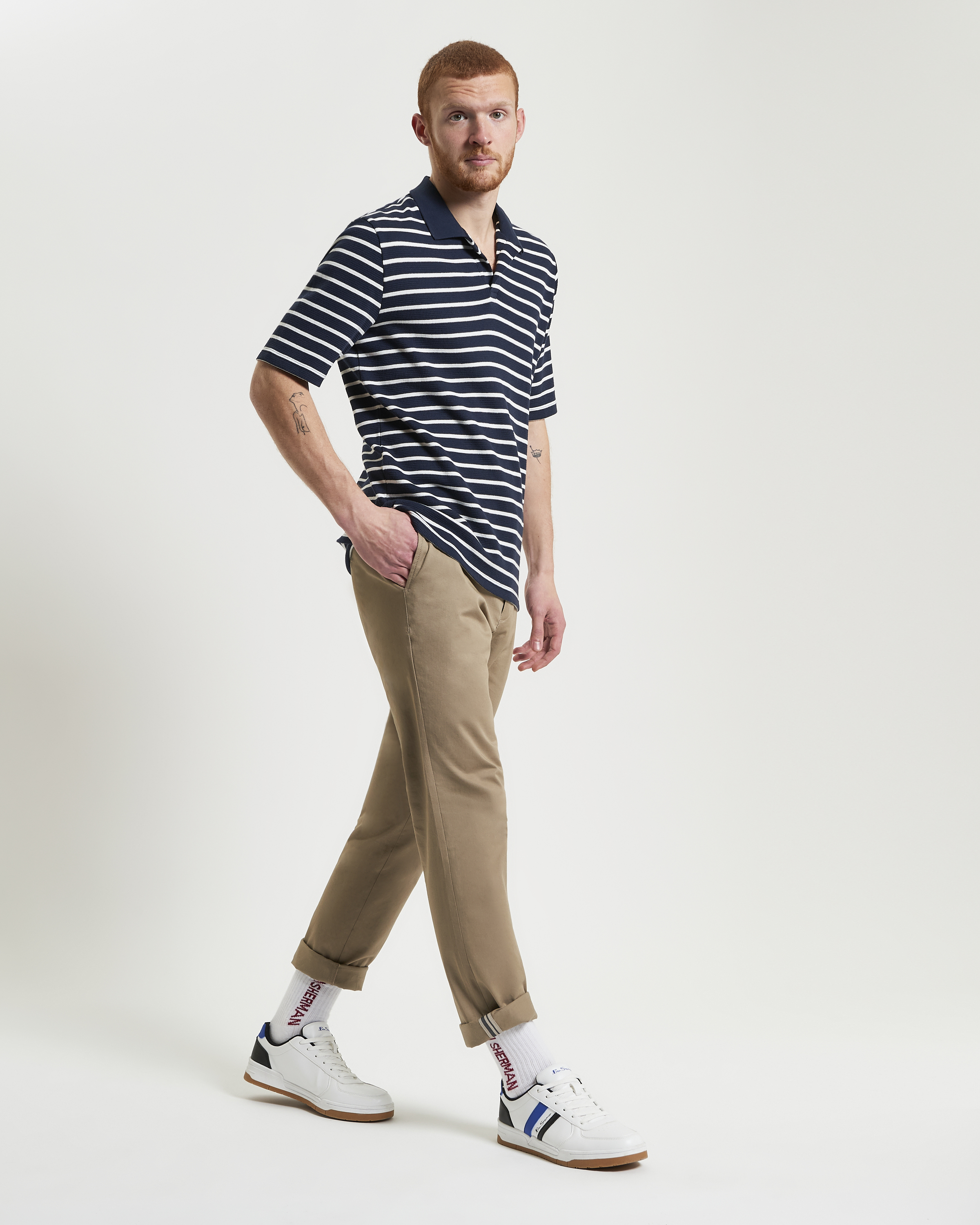 Polo Ben Sherman ajuste regular confeccionado en 100% algodón orgánico texturizado manga corta con rayas waffle cuello tipo polo sin botones