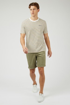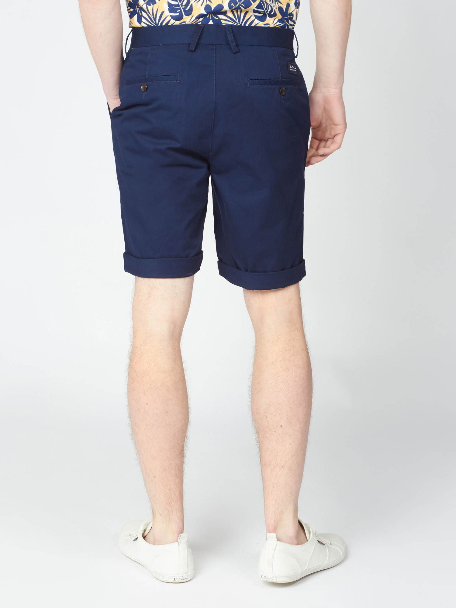Nuestro exclusivo pantalón chino de corte slim está hecho de algodón elástico para un estilo cómodo y cotidiano. Los pantalones cortos cuentan con dos bolsillos laterales con un bolsillo para monedas dos bolsillos jet con la marca Ben Sherman en el centro de la espalda y detalles de cinta de rayas mod en el dobladillo.