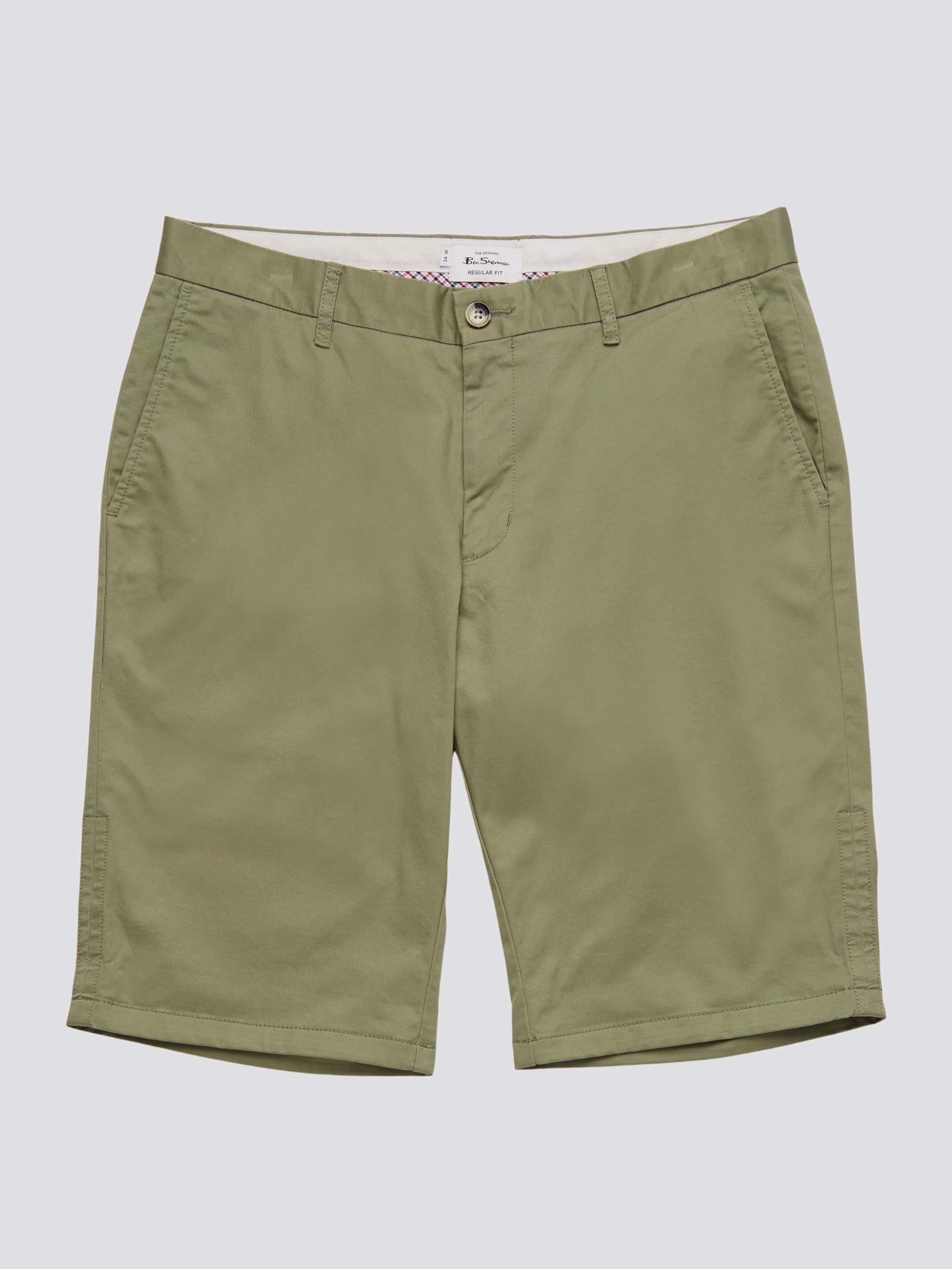 Nuestro exclusivo pantalón chino de corte slim está hecho de algodón elástico para un estilo cómodo y cotidiano. Los pantalones cortos cuentan con dos bolsillos laterales con un bolsillo para monedas dos bolsillos jet con la marca Ben Sherman en el centro de la espalda y detalles de cinta de rayas mod en el dobladillo.
