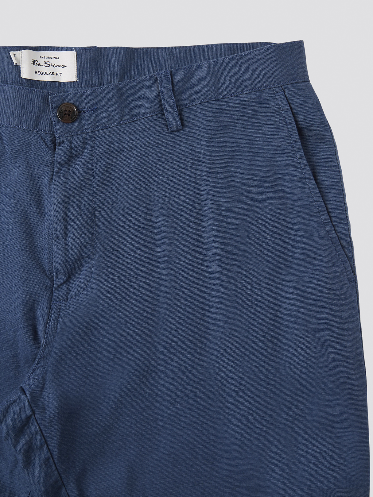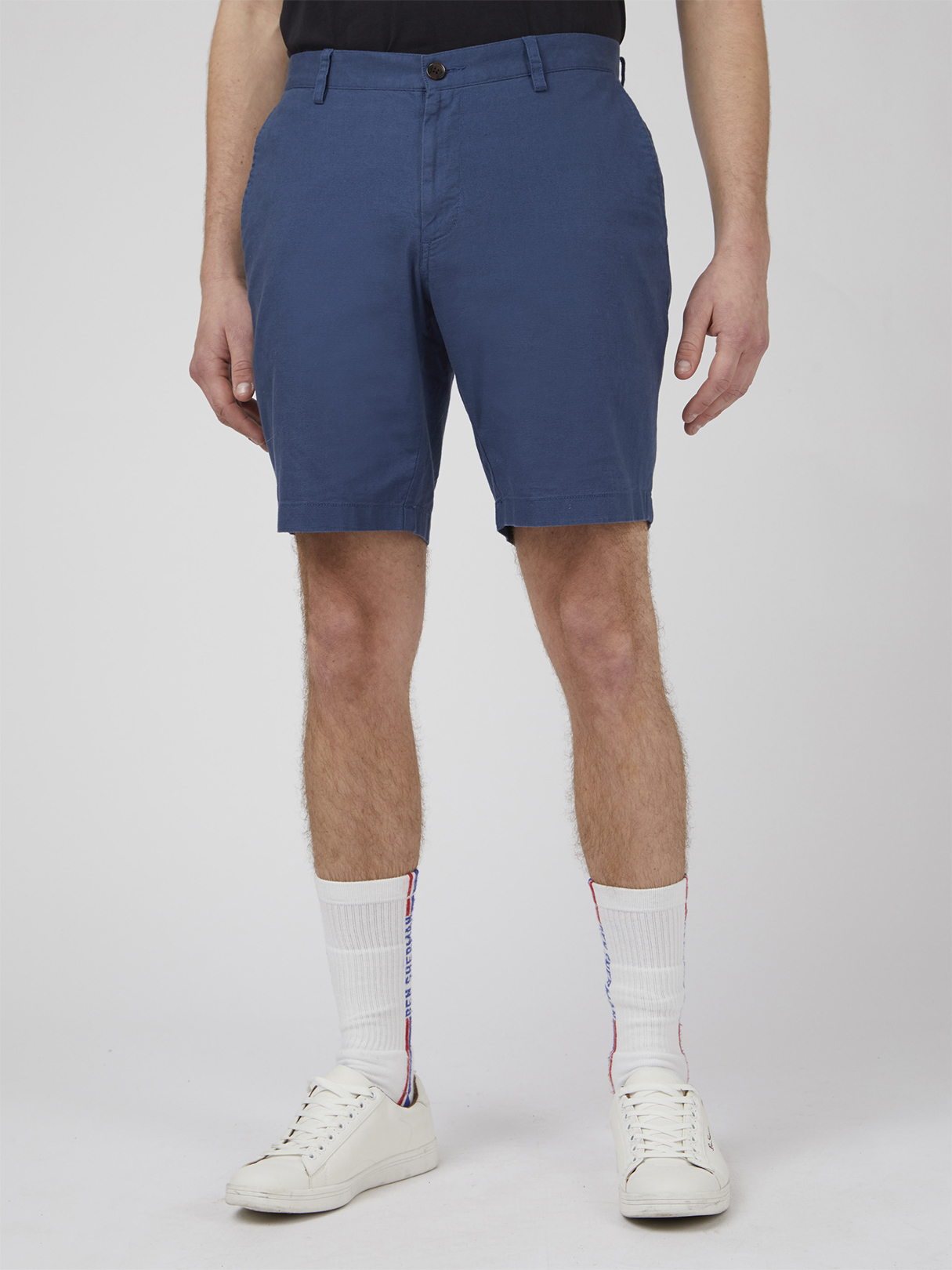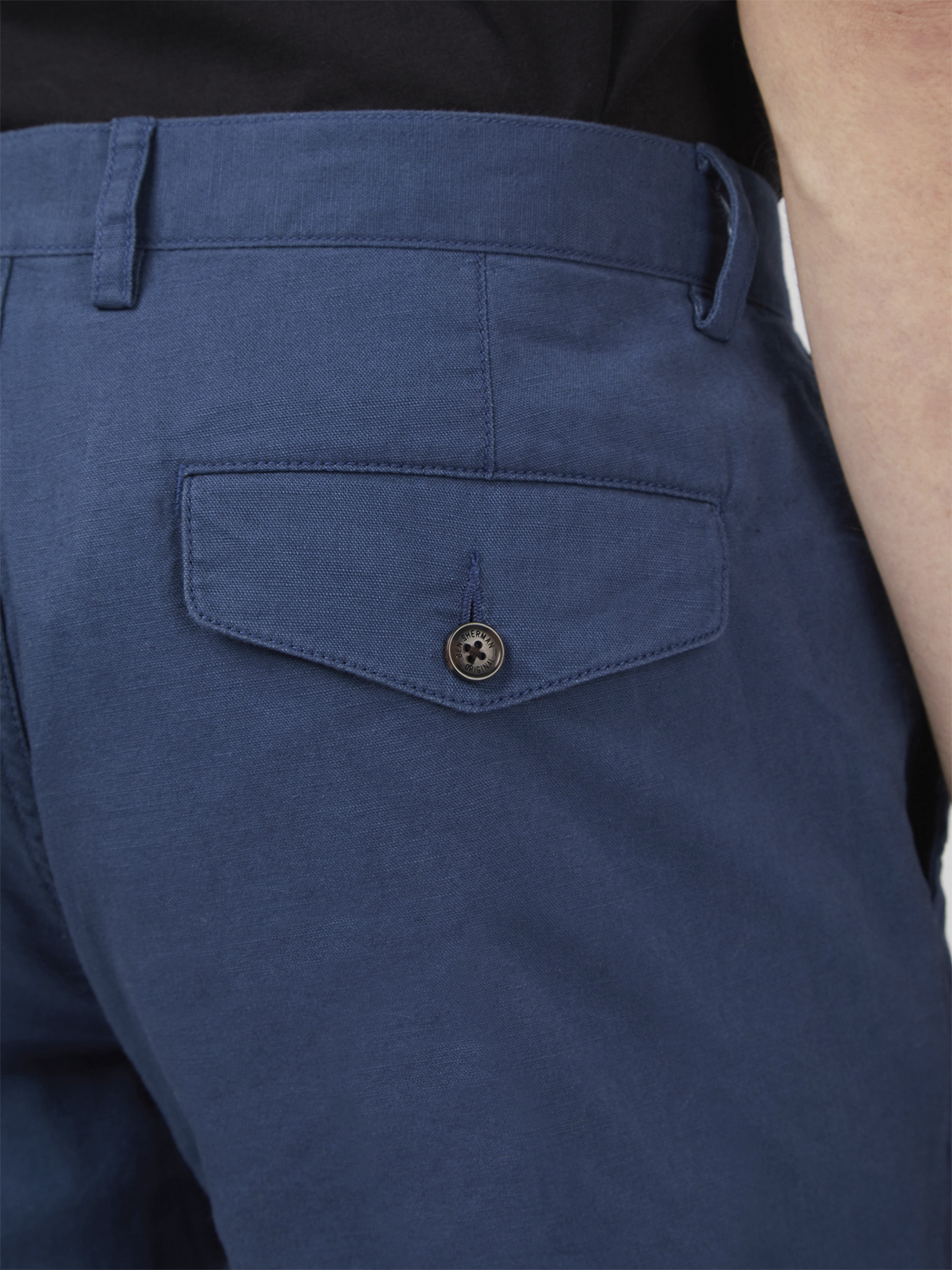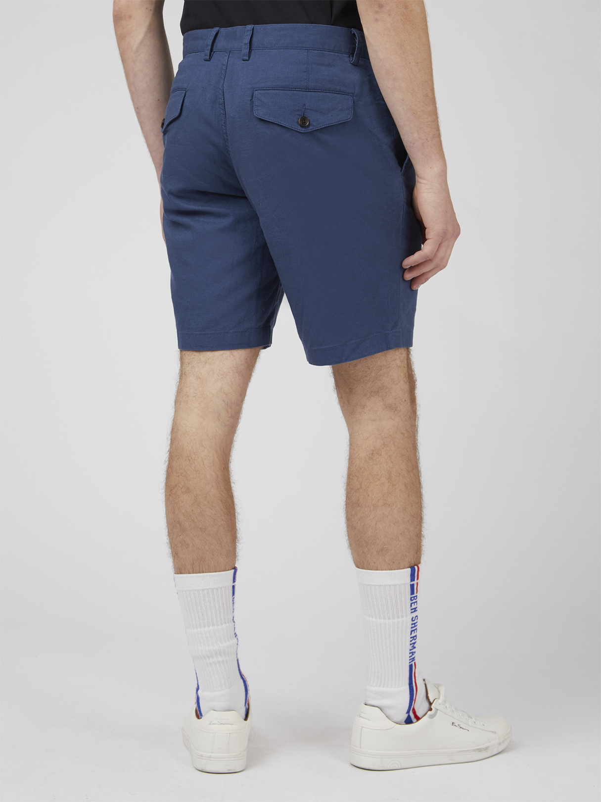 Este pantalón corto de algodón y lino con un ajuste normal. Las características incluyen un ribete de la cintura en contraste insignia de Ben Sherman 2 bolsillos delanteros inclinados y botones en los bolsillos con solapa en la parte posterior.