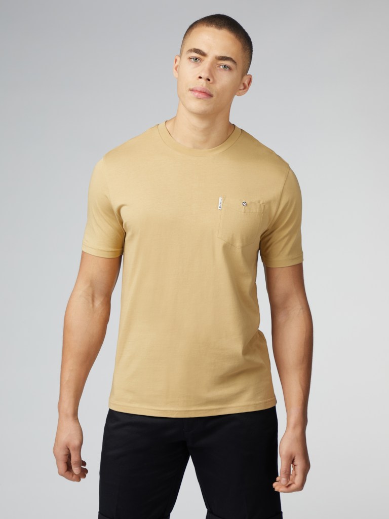 Nuestra exclusiva camiseta de bolsillo es una camiseta clásica de cuello redondo confeccionada en algodón orgánico. Un bolsillo en el pecho con cierre de broche con el logo del objetivo completa el estilo informal y moderno.