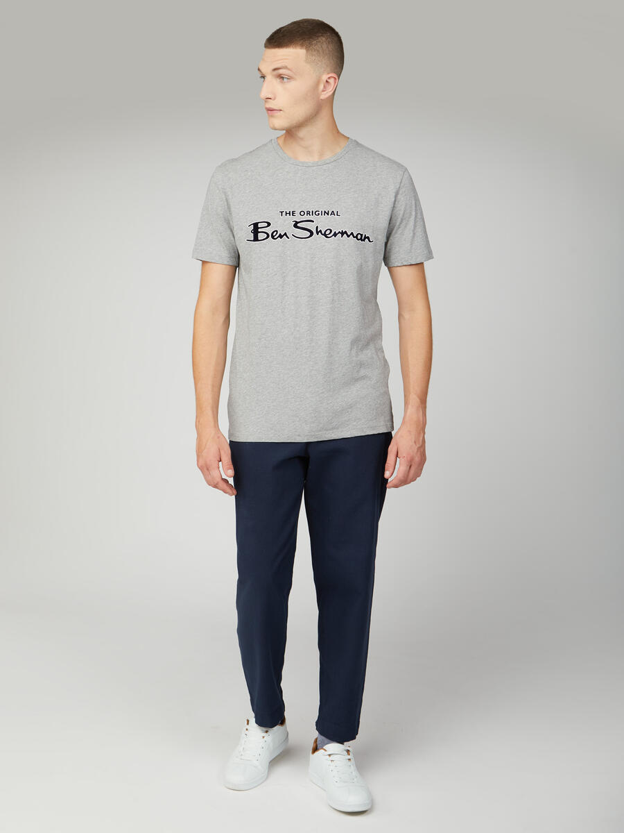 Esta camiseta de algodón con cuello redondo se destaca con nuestro algodón orgánico certificado GOTS. Presenta nuestro logotipo “Ben Sherman” característico en el pecho con un estampado flocado.