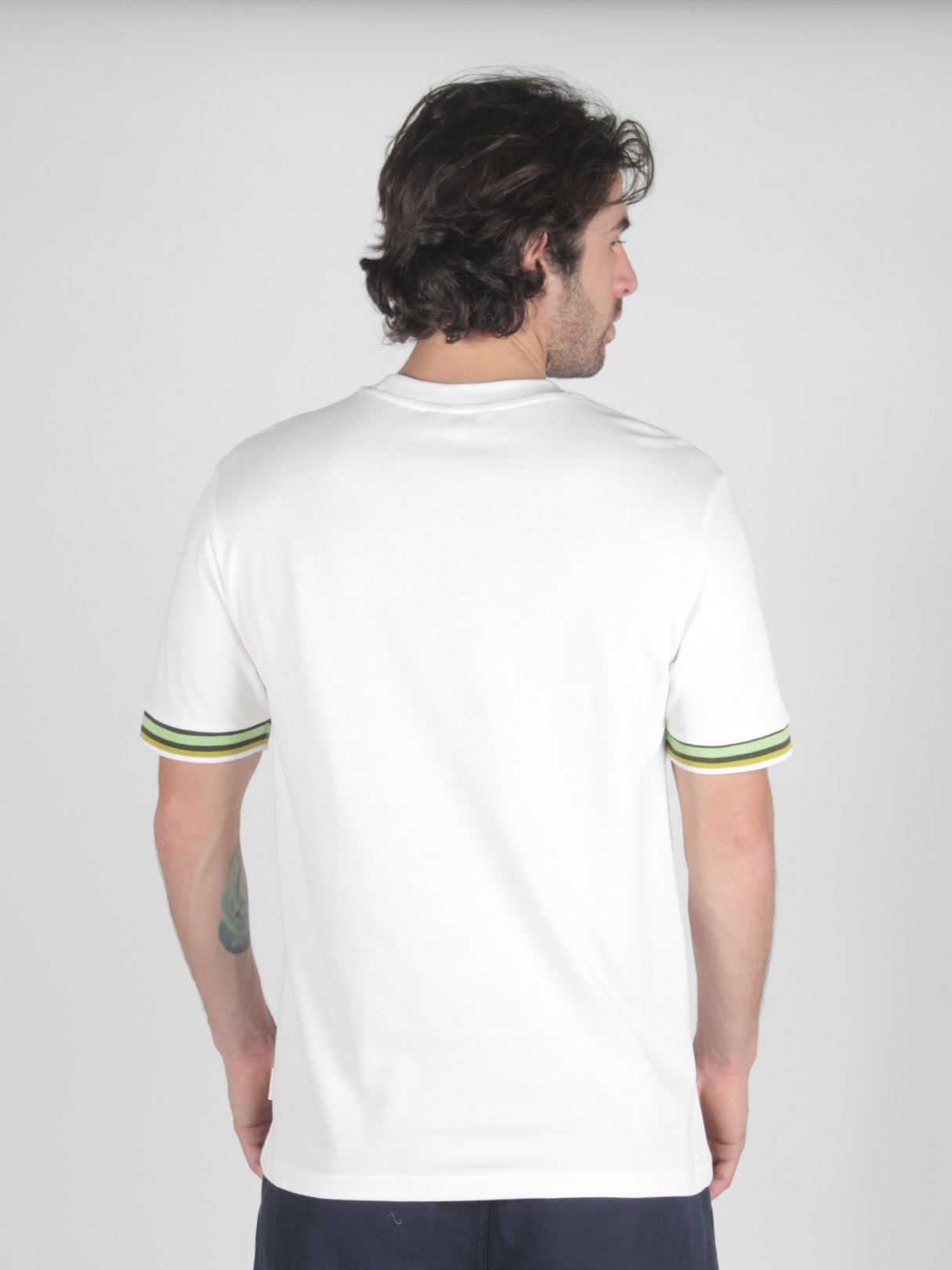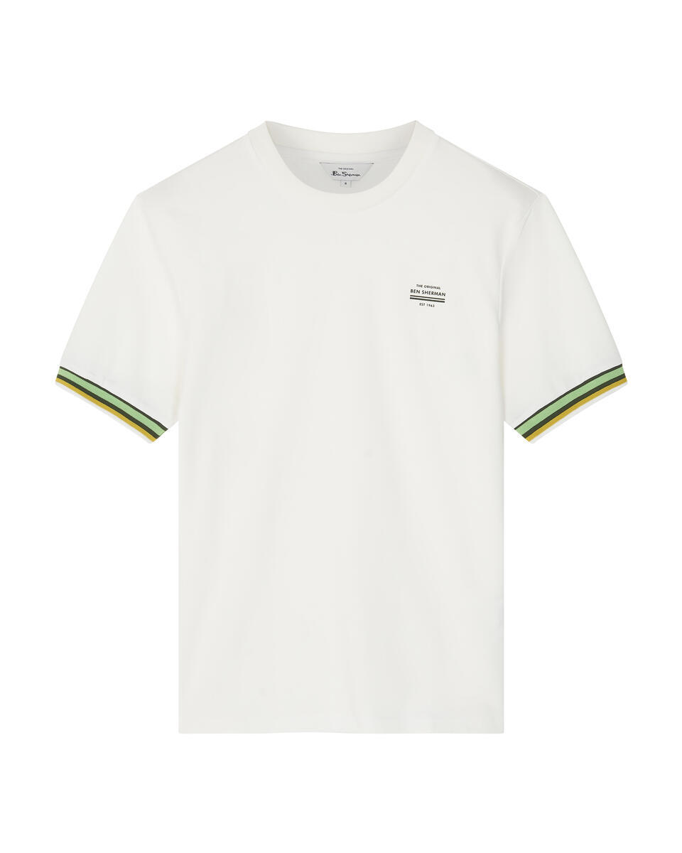 Una playera de corte relajado con cuello redondo confeccionada en 100 % algodón orgánico. Las características incluyen un estampado de pecho alto ‘Ben Sherman’ y un corte y puños cosidos en contraste.