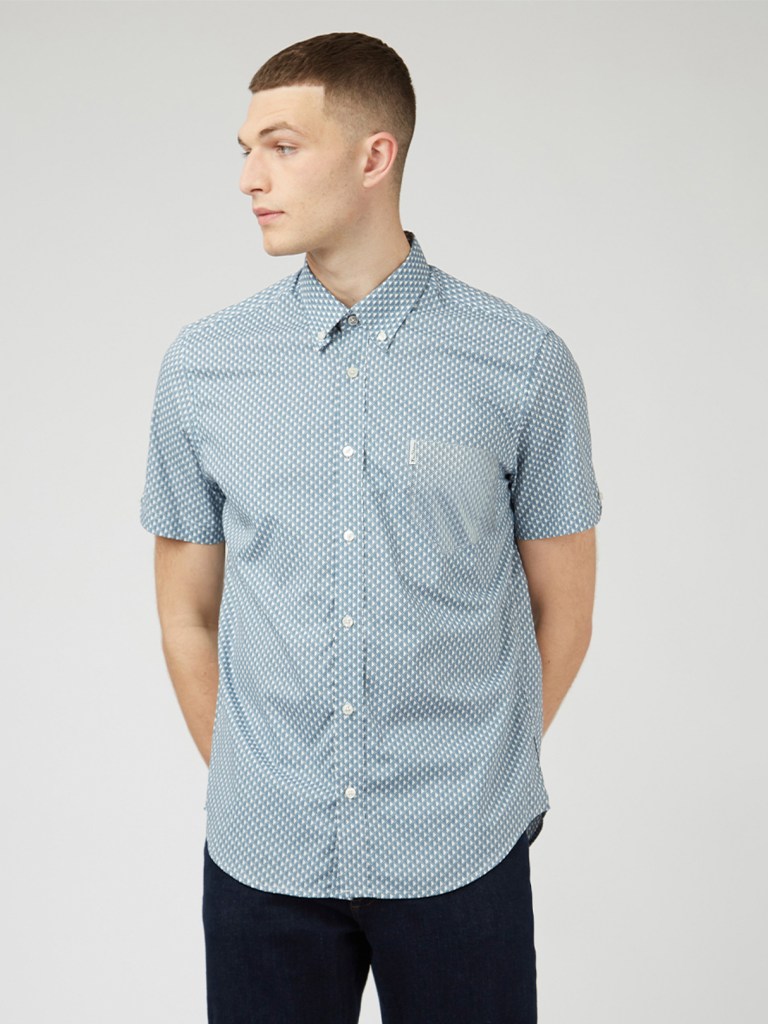Esta camisa de corte estándar está diseñada con un estampado de lunares geográficos. Con dobladillo curvado cuello con botones de dos dedos y una pestaña tejida con la marca Ben Sherman en la costura lateral.