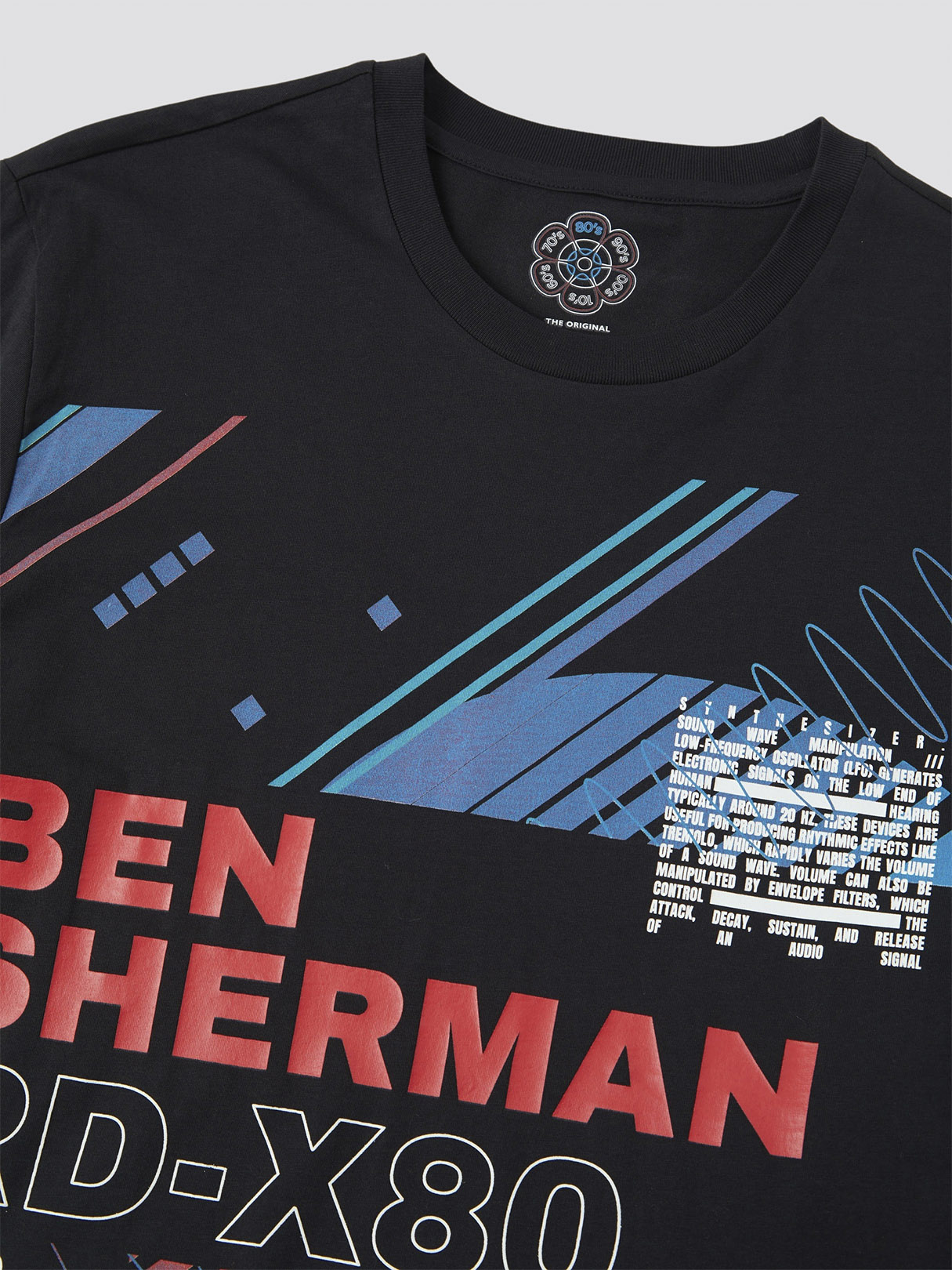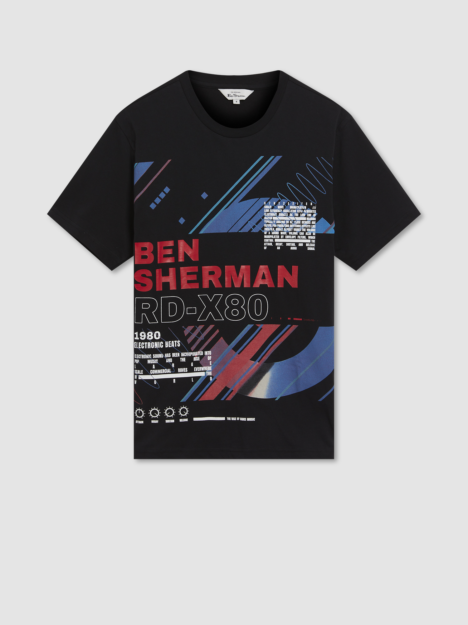 Inspirada en las obras de arte de los casetes de los años 80 y en los sonidos electrónicos de la década esta camiseta 100 % orgánica con certificación GOTS presenta un estampado gráfico llamativo para celebrar el 60.º aniversario de Ben Sherman.