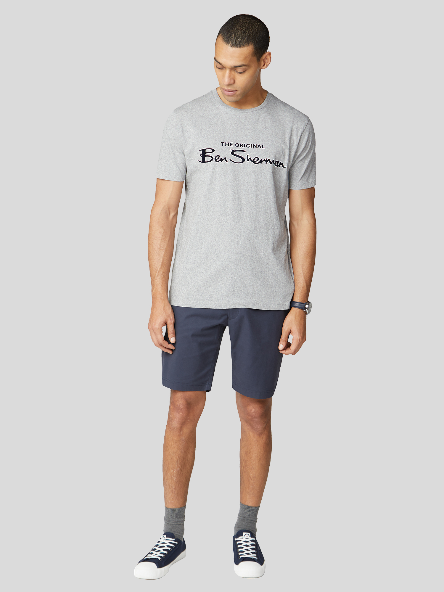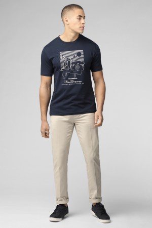 Esta camiseta de algodón con cuello redondo se destaca con nuestro clásico estampado de cofres con bandadas de Ben Sherman.