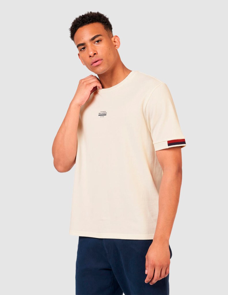 Una playera de cuello redondo y corte relajado confeccionada en algodón. Las características incluyen un estampado de pecho alto ‘Ben Sherman’ en realce y puños con cárdigan en contraste de color.