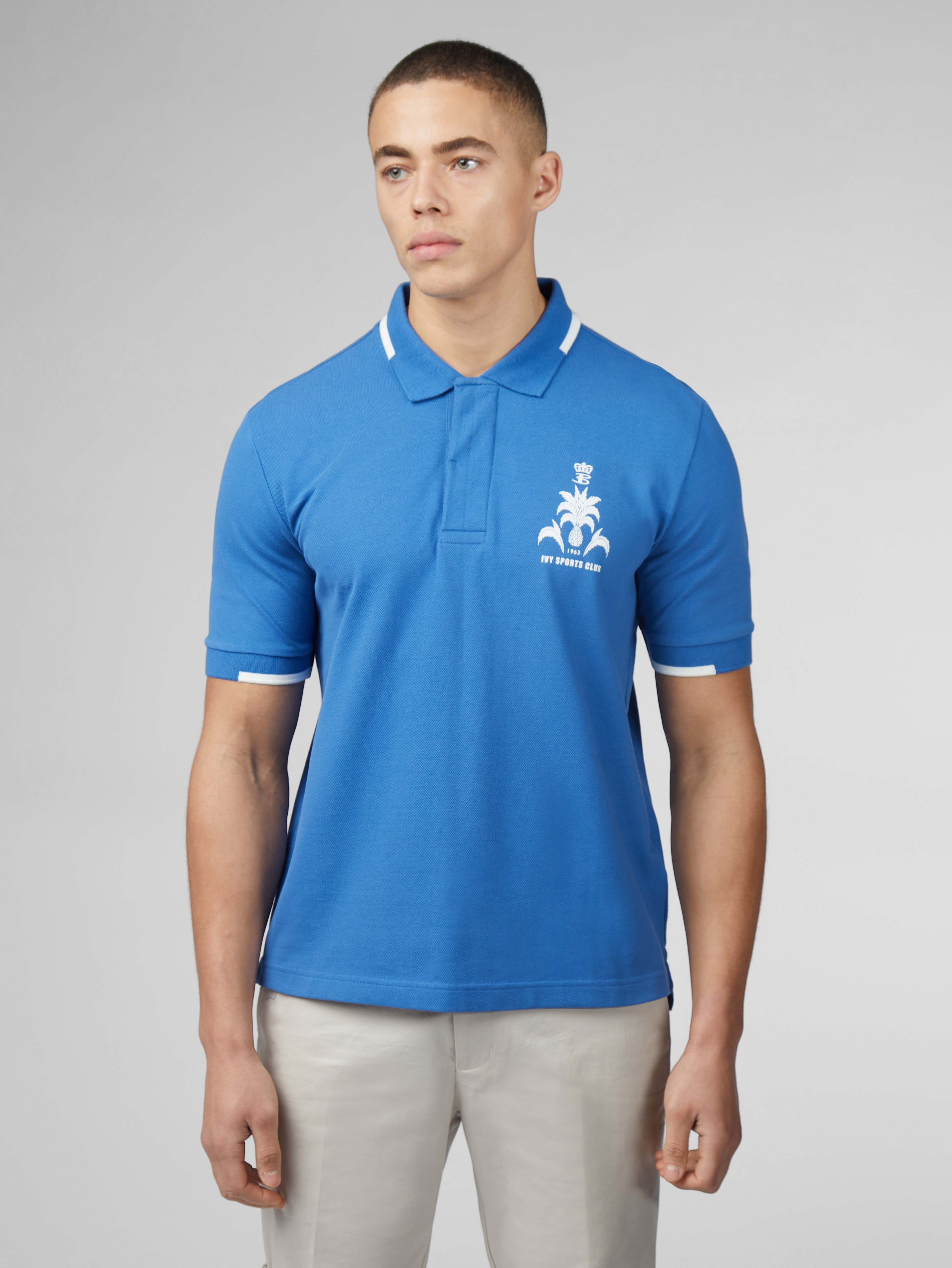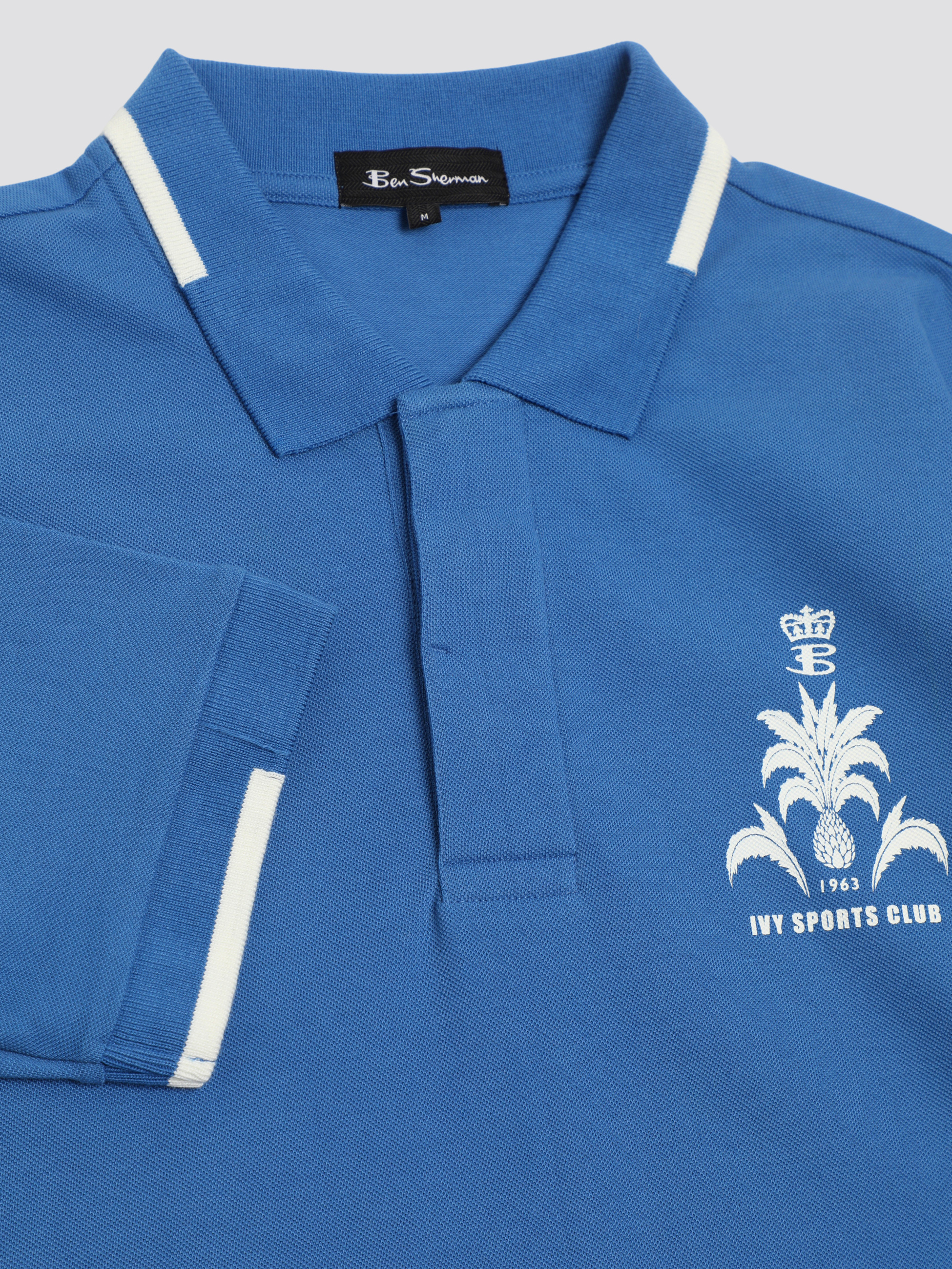 Un polo Ben Sherman de piqué con ajuste relajado en algodón. Las características incluyen ribetes en puños y cuello con contraste de color y cierre de cuatro botones. Este estilo se completa con un estampado en el pecho “Ivy Sports”.