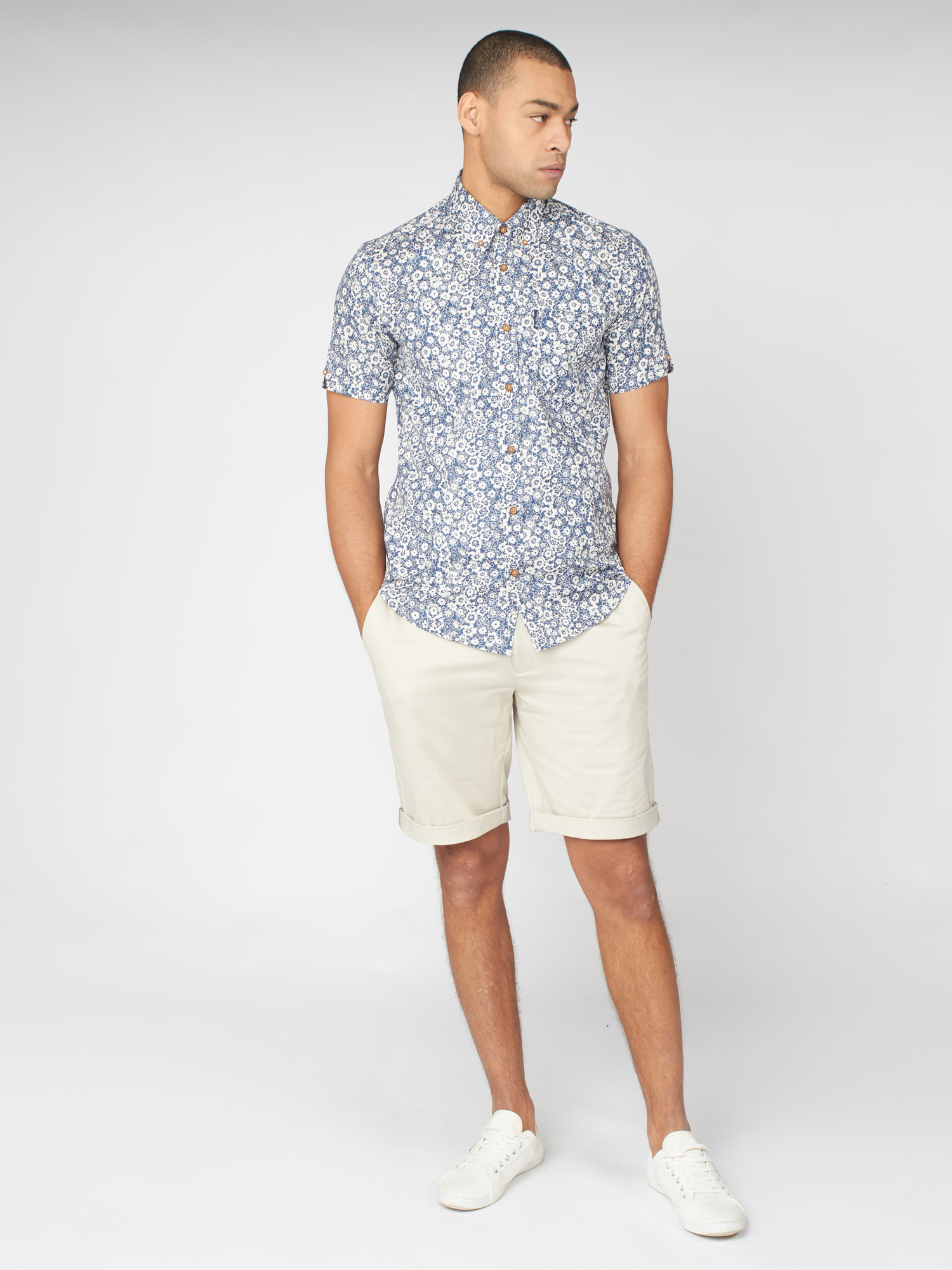 Nuestro exclusivo pantalón chino de corte slim está hecho de algodón elástico para un estilo cómodo y cotidiano. Los pantalones cortos cuentan con dos bolsillos laterales con un bolsillo para monedas dos bolsillos jet con la marca Ben Sherman en el centro de la espalda y detalles de cinta de rayas mod en el dobladillo.