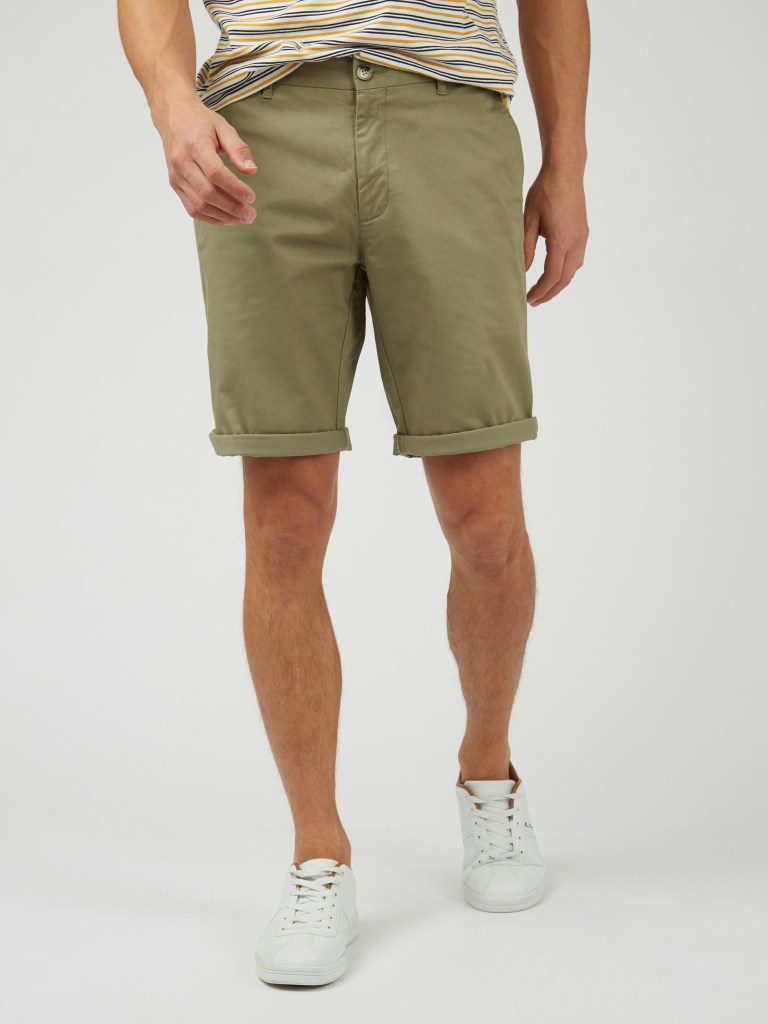 Este pantalón chino corto clásico de corte regular tiene dos bolsillos laterales un bolsillo para monedas y dos bolsillos de ojal. Con detalles de rayas modernas en el dobladillo y la marca Ben Sherman en el centro de la espalda, la prenda ideal para combinar con playeras o suéteres sencillos.